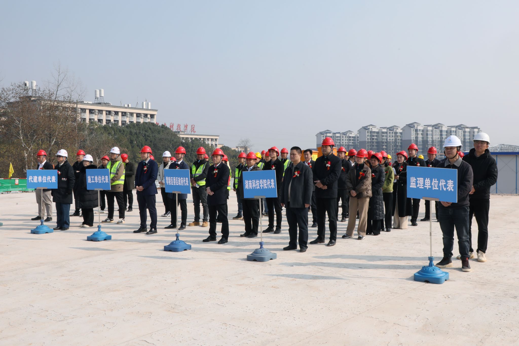 本网讯(记者 向薛峰 谢志豪)12月28日上午,我校举行新建学生公寓及食堂项目开工仪式,零陵区副区长秦明明,党委副书记、校长黄创霞及全体在家校领导、党委委员等领导出席仪式,仪式由校党委副书记宋宏福主持。