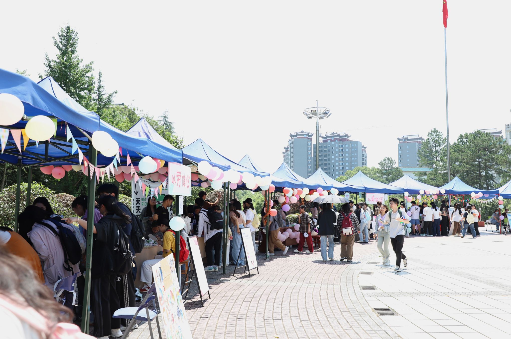 活动现场氛围热烈,“足球情绪踢靶”吸引众多学生参与,参与者用足球踢向标有情绪标签的靶子,大声喊出“踢飞压力”等释放宣言;在“独一无二的指纹树”创意涂鸦幕布前,师生们按下彩色指纹,写下鼓励话语,集体绘就“心灵大树”……各学院打造的沉浸式特色活动,让学生在运动释放、艺术创作中感知心理成长的力量,现场笑声与掌声此起彼伏。