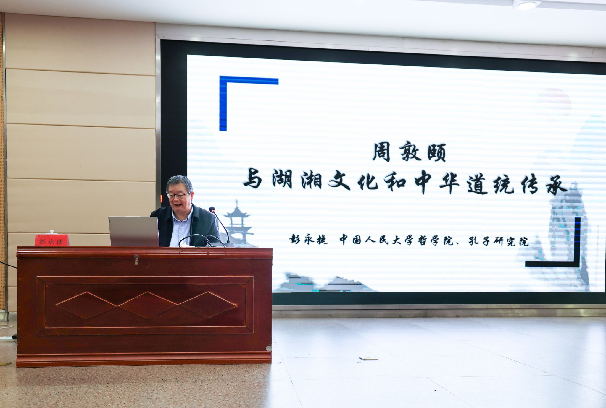 胡代松指出,彭永捷教授以清晰的脉络揭开中华文化道统的深层密码,更厘清了周敦颐与湖湘文化的精神联结。胡代松强调,传承道统并非复古,而是要从周敦颐等先贤的智慧中,汲取坚守文化根脉、担当时代使命的力量,让千年道统在当代焕发生机,成为我们应对时代挑战、滋养精神世界的重要源泉。