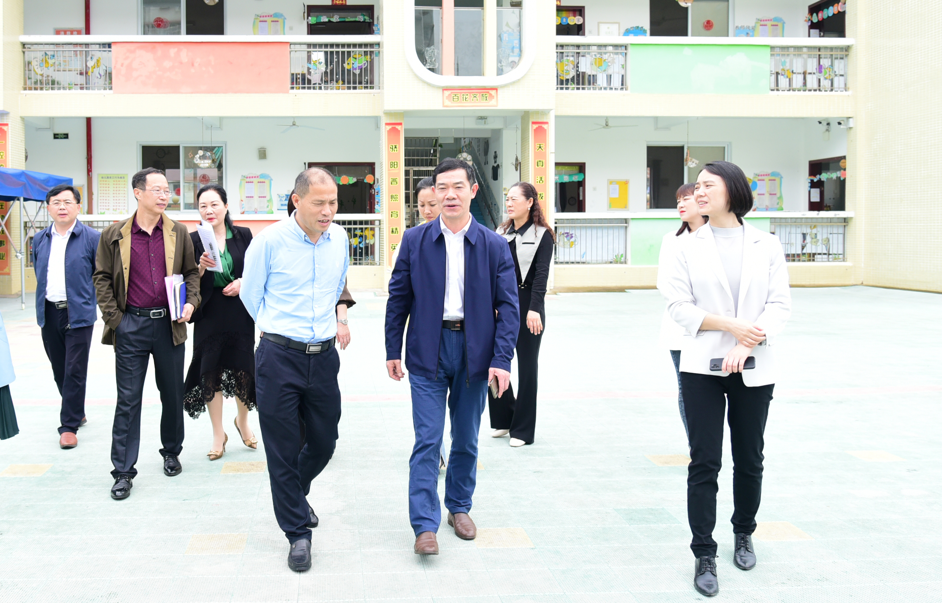 陈丽萍一行还实地参观了科苑幼儿园的寝室、活动室、户外运动场地等,深入各个班级查看了幼儿活动开展情况,听取了幼儿园关于校舍使用及建设的情况介绍,并详细询问了幼儿园师生的生活条件以及幼儿园设施设备建设等方面存在的问题和困难。