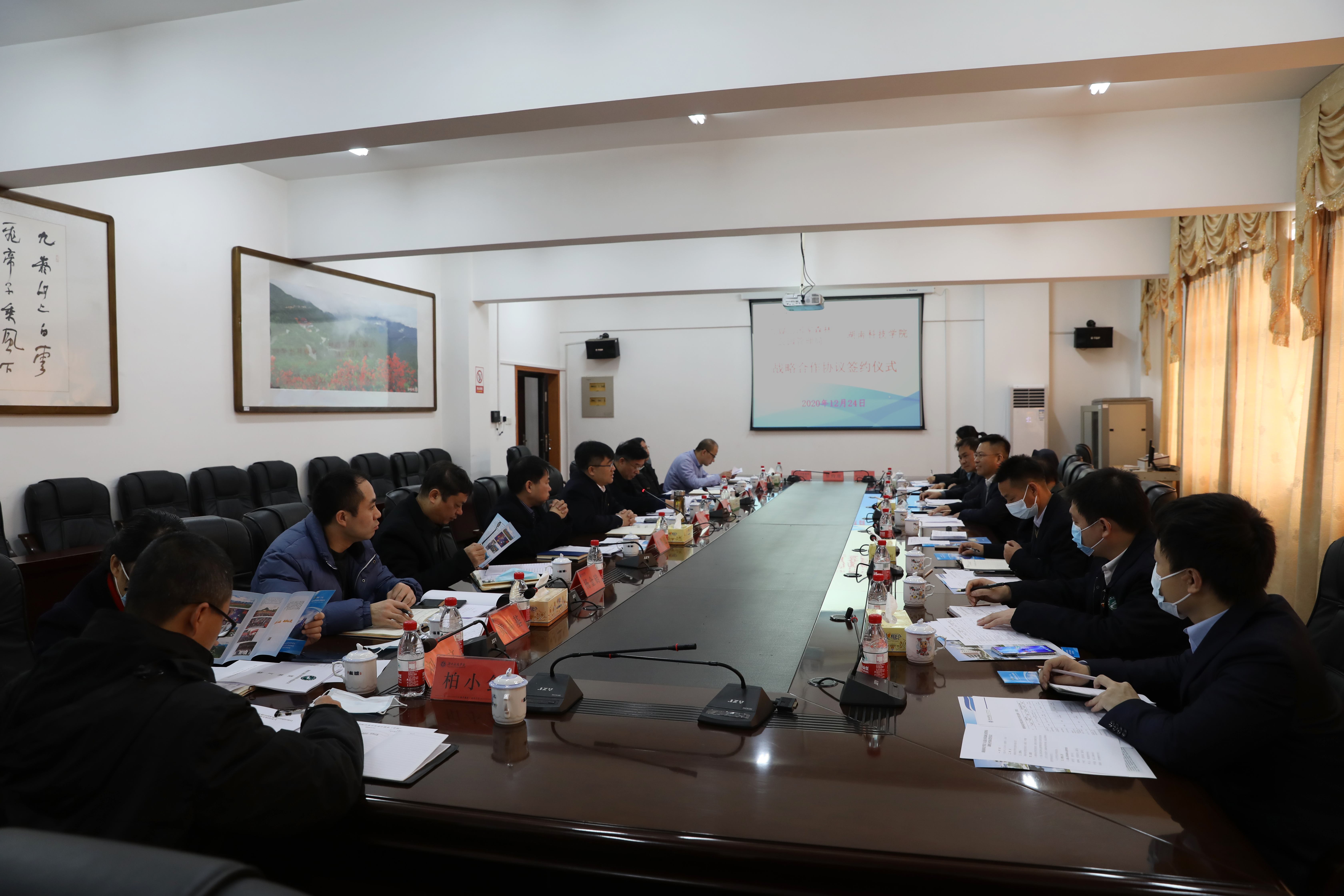 本网讯 12月24日,学校与九嶷山国家森林公园管理局签署战略合作协议。九嶷山国家森林公园管理局党委书记赵利民,校党委副书记、校长李钢,副校长宋宏福、李常健出席签约仪式。
