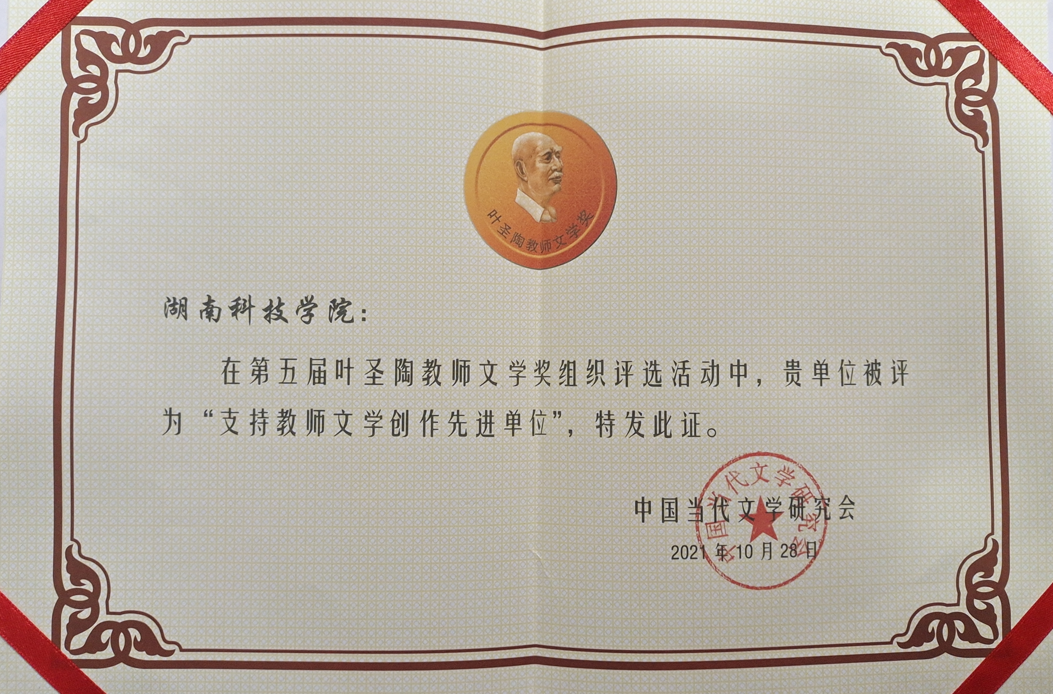 (通讯员 欧阳智超)3月25日,中国当代文学研究会主办的第五届“叶圣陶教师文学奖”在苏州甪直古镇颁奖,30部作品分获金奖、银奖。其中,我校文法学院副教授刘忠华的诗集《时间的光芒》获得银奖,我校被评为“支持教师文学创作先进单位”