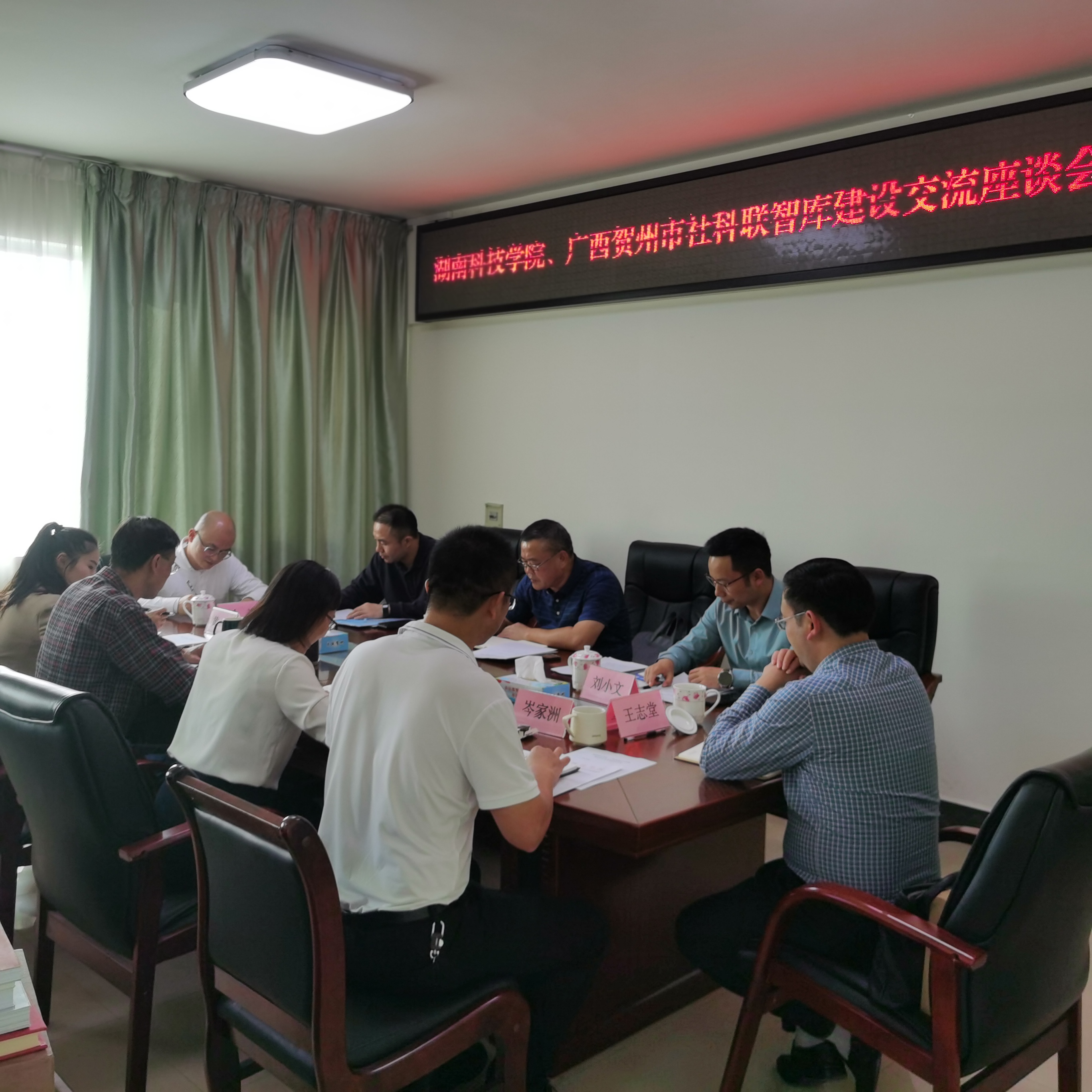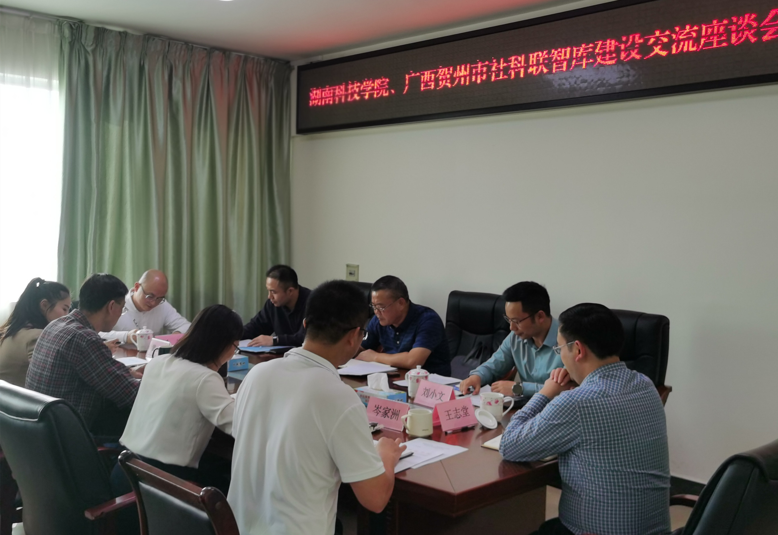 在贺州市社科联,杨剑华就贺州市社科联服务贺州市以及广西省、广东省两省社科联开展“两广社科智库联盟”战略合作的有关情况作了介绍。推介了三方共建智库联盟的运行机制、条件保障、成果产出及建设经验,并对湘粤社科智库联盟建设等方面提出宝贵的建议。