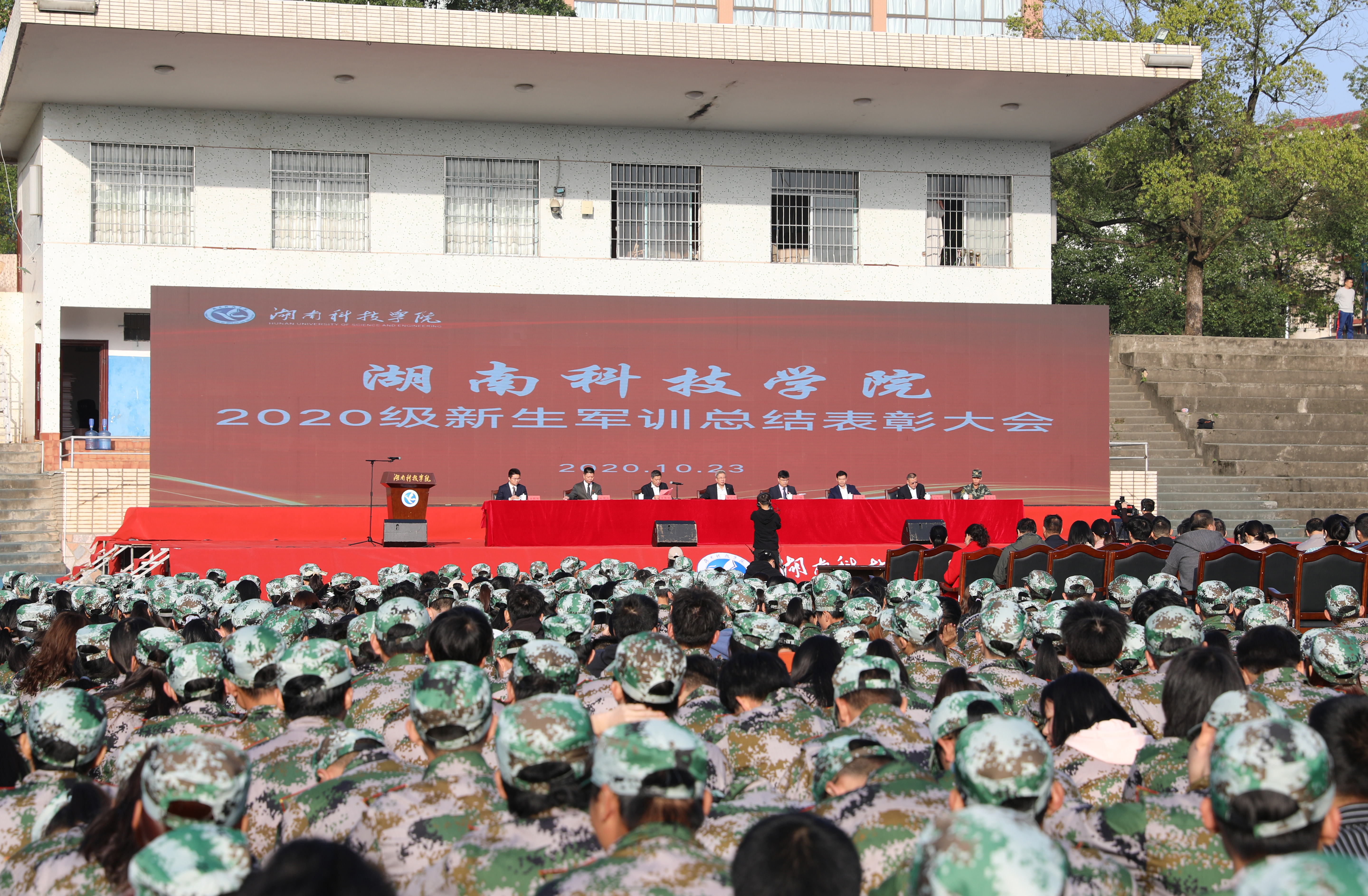 本网讯(记者 邓洁 陈汝婷 吴贵佳)10月23日,学校举行2020级新生军训总结表彰大会暨开学典礼。党委书记曾宝成,党委副书记、校长李钢,校领导唐艳明、吴小林、程智开,党委委员、组织部长何福林,武警永州支队副参谋长蒋志平出席,大会由唐艳明主持。