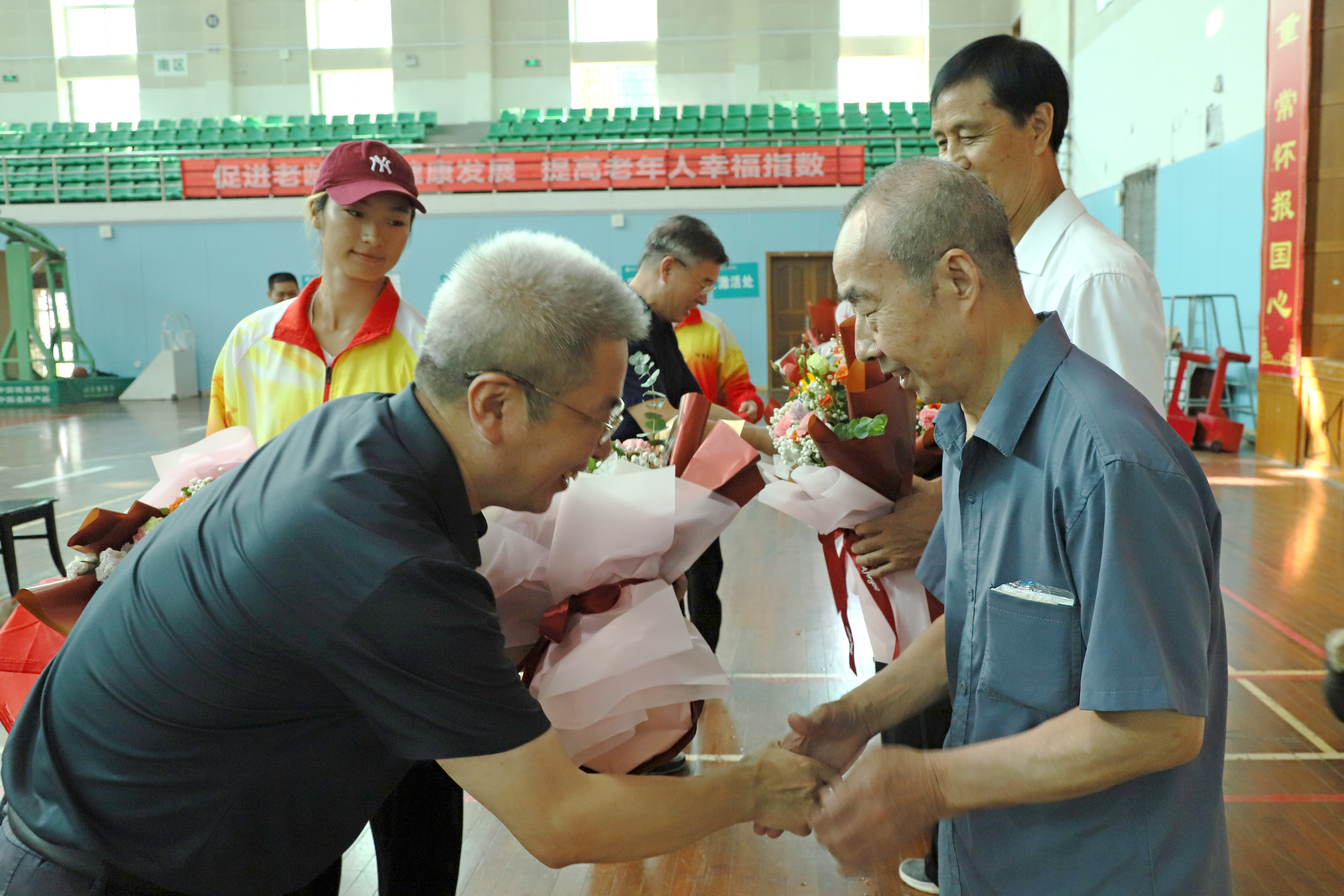 本网讯 9月30日,学校在体育馆举行“喜迎二十大 幸福乐重阳”游艺会。党委书记曾宝成,党委副书记宋宏福,党委委员、副校长吴小林来到活动现场,为老同志们送上诚挚的祝福。