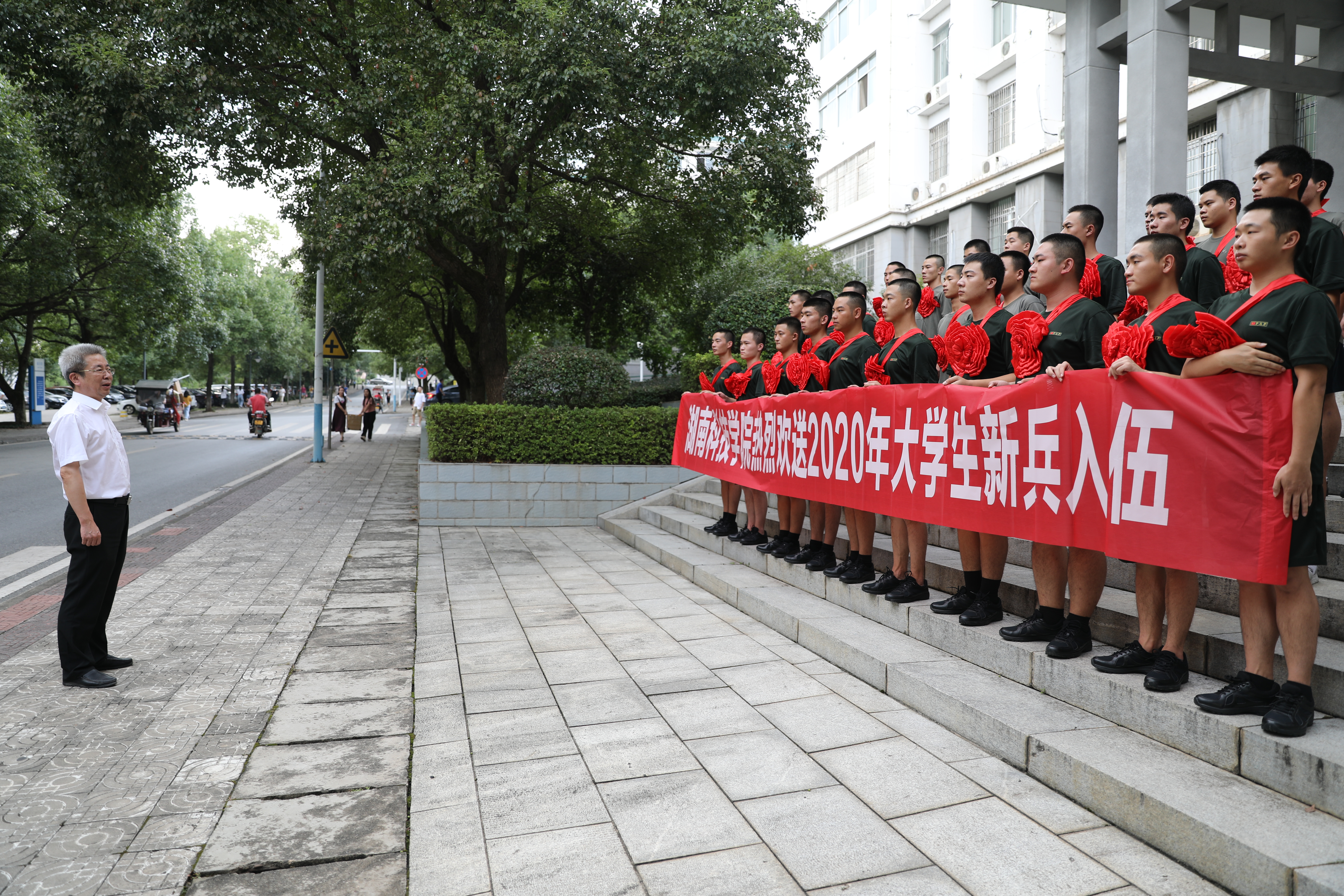 武装部相关人员、各教学学院党总支副书记参加欢送仪式。