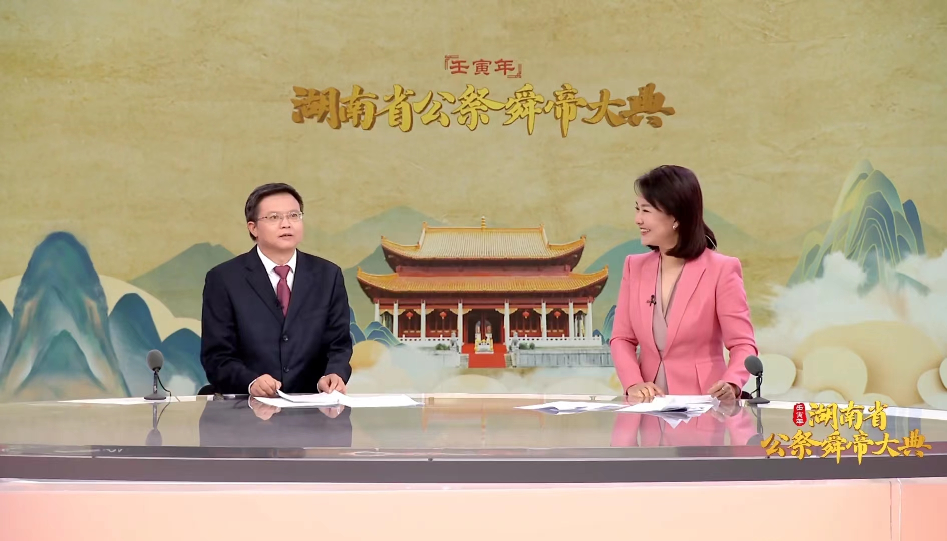 本网讯(记者 李钰晨)9月7日上午,由湖南省政府主办,永州市政府、宁远县政府承办的壬寅年湖南省公祭舜帝大典,在宁远县九嶷山隆重举行。为扩大活动的影响力,弘扬舜德文化,公祭大典进行了现场直播,我校湖南省舜文化研究基地首席专家潘雁飞教授受邀做客直播间。
