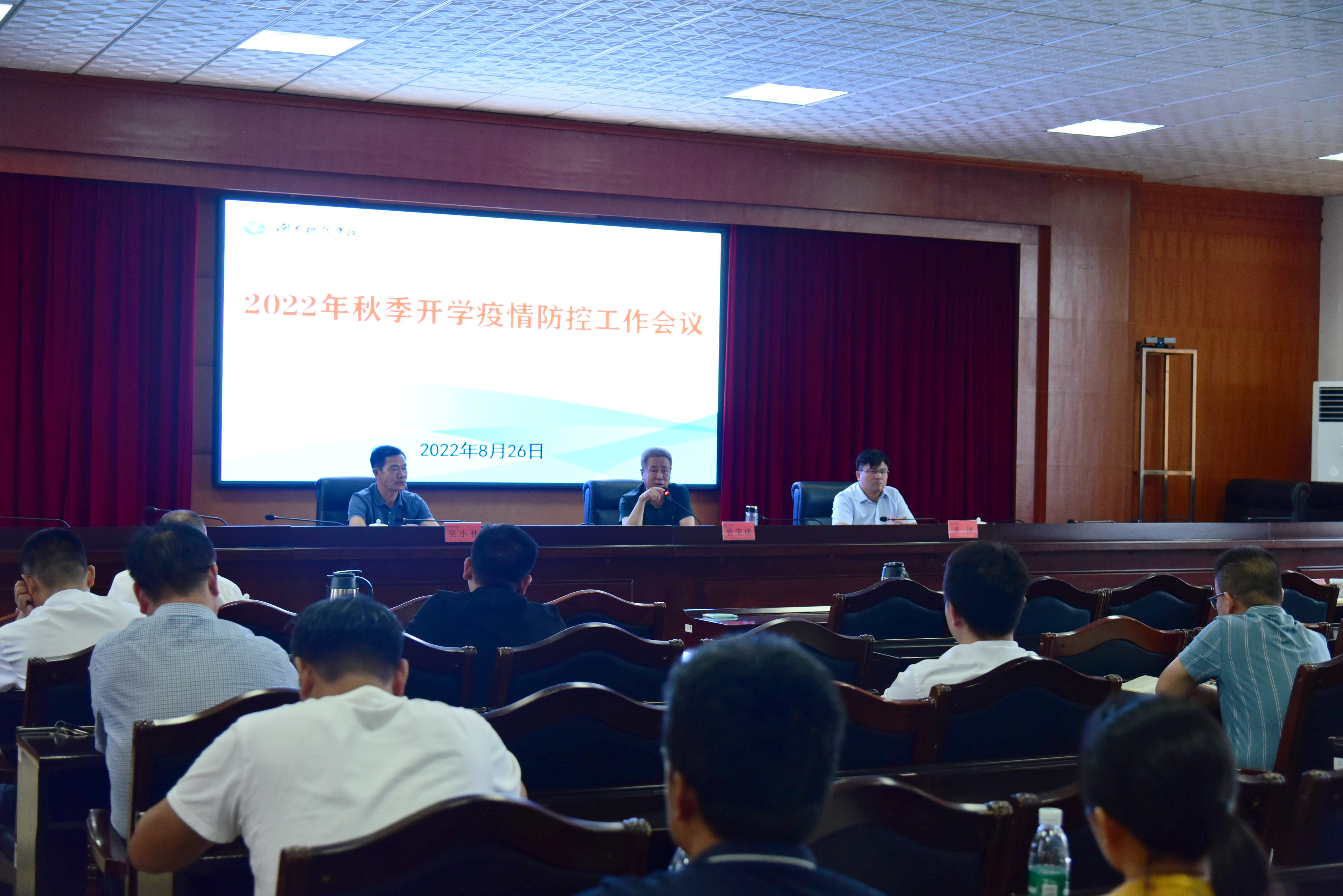 本网讯(记者 何宁馨)8月26日下午,学校在行政楼八楼第一会议室召开秋季开学疫情防控工作会议,全面分析了当前疫情防控形势,就做好2022年秋季开学工作进行安排部署,提出明确要求。党委书记曾宝成,校长李钢,校领导李常健、吴小林、陈灿军、何海,党委委员、组织部长杨涛出席会议。
