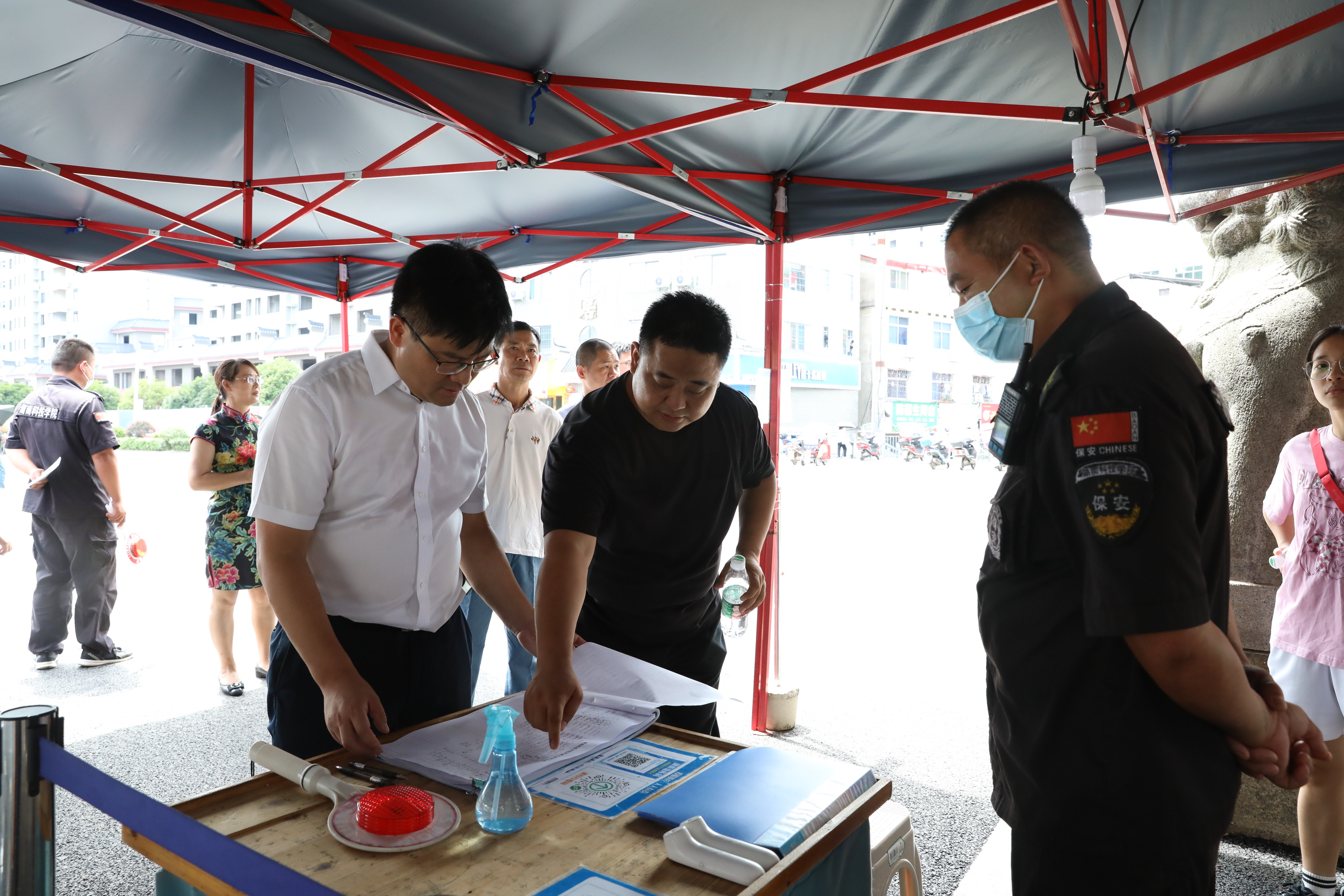 在招生录取室,校领导仔细询问今年招生录取工作的时间安排、前期招生宣传情况,认真了解今年我校在湘投档分数线、各专业的线上招录情况以及录取通知书的设计及寄送等情况。在图书馆,李钢勉励暑期留校的同学们要坚定信念,明确目标,注重方法,提高效率,保持良好心态,做到劳逸结合、张弛有度,同时他还叮嘱大家要注意饮食安全,防溺水,严格遵守学校疫情防控相关规定。在医务室,校领导看望慰问在岗一线医护人员,检查相关工作开展情况。在学校东门,校领导查看人员、车辆检查登记记录册。