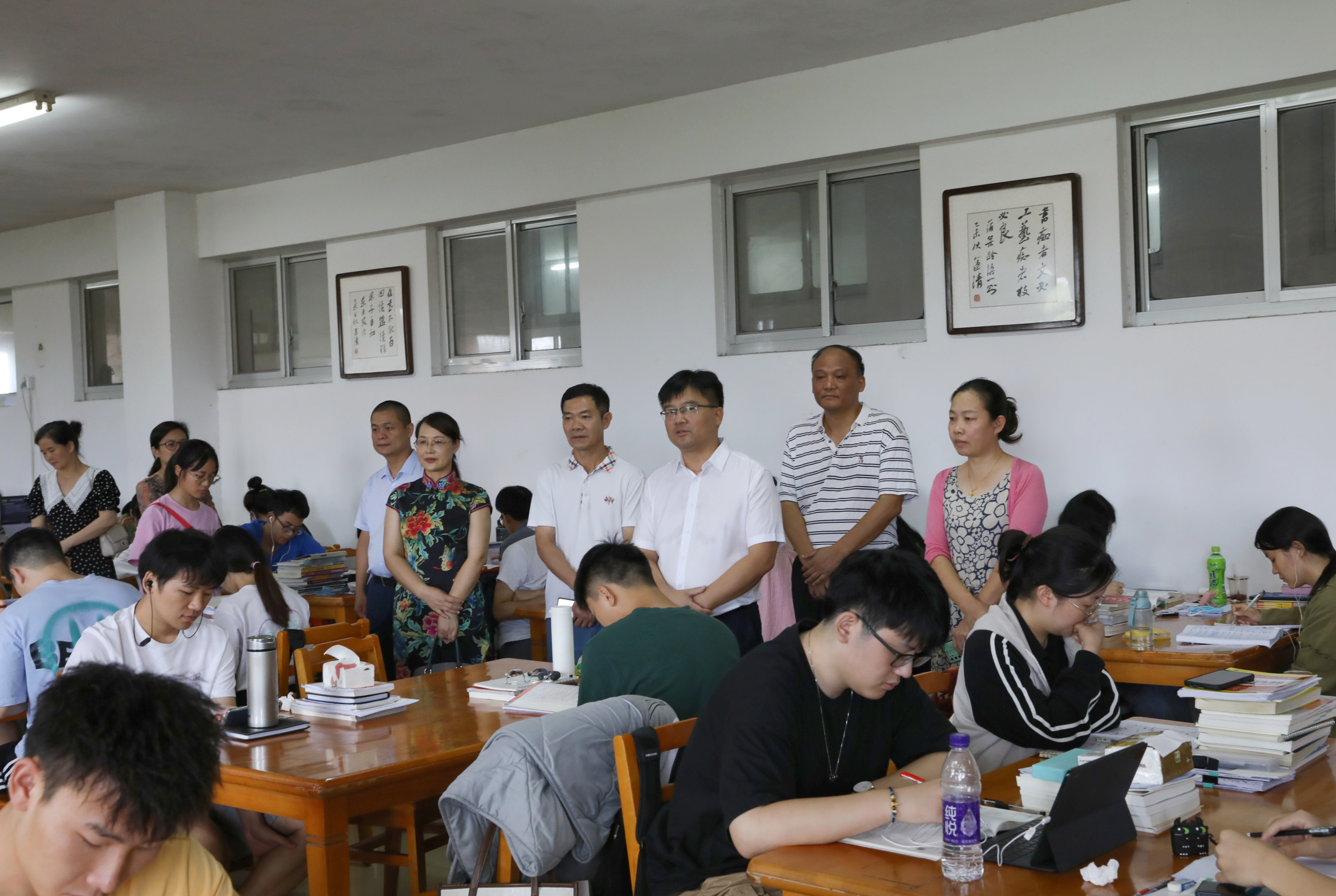 本网讯(记者 何宁馨)7月21日,正值夏季高温,校长李钢,副校长吴小林、郑银芳先后到招生录取室、图书馆、医务室、校门口、学生公寓、学生食堂等地,检查指导暑期学校各项工作并看望慰问坚守在岗的一线教职员工。