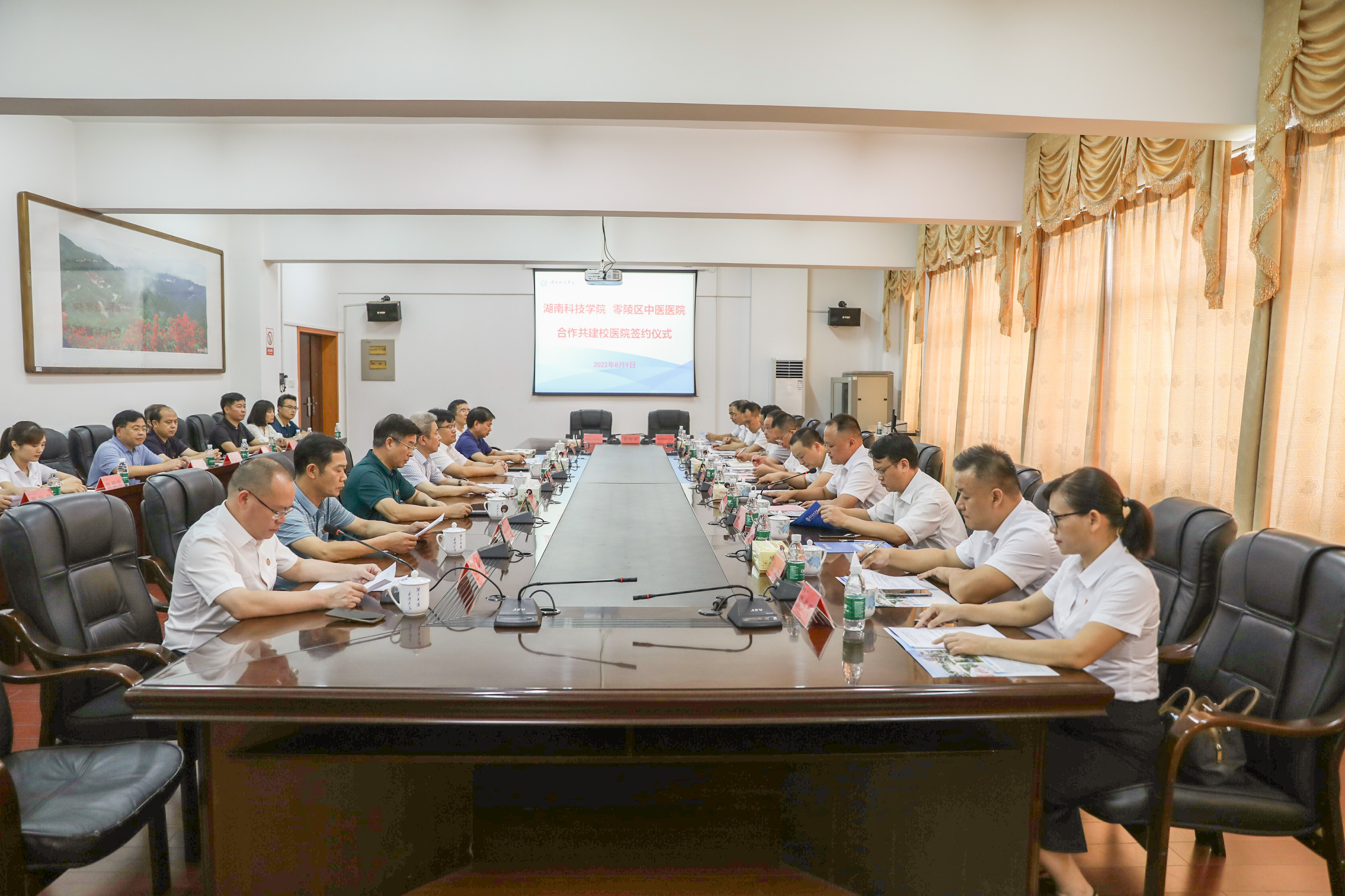 本网讯 8月9日,学校与零陵区中医医院合作共建校医院签约仪式顺利举行。校党委书记曾宝成,零陵区委副书记、区长龙亮、万搏平台、零陵区人民政府、区卫生健康局、区中医医院及相关单位部门负责人出席本次签约仪式。