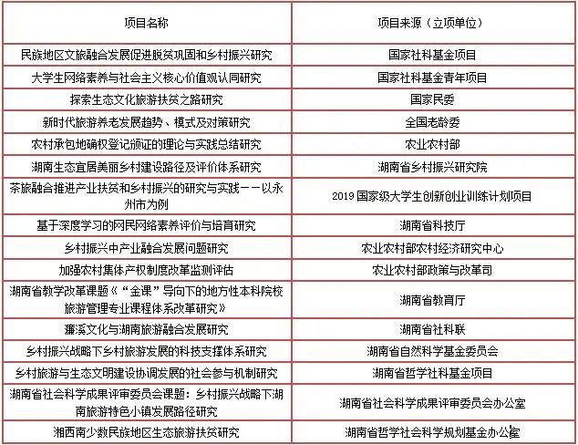 近五年,学院获国家社科基金项目2项,省部级重大、重点等课题20余项,各类横向、委托研究课题和文旅、乡村振兴规划、策划课题30余项,在《中国教育报》《中国社会科学报》等报刊公开发表各类学术论文80余篇,出版专著、教材10余部。教师调研成果获省部级以上领导批示肯定30余人次,有关智库成果被党委政府文件采纳,进入湖南省文化和旅游厅等部门决策。