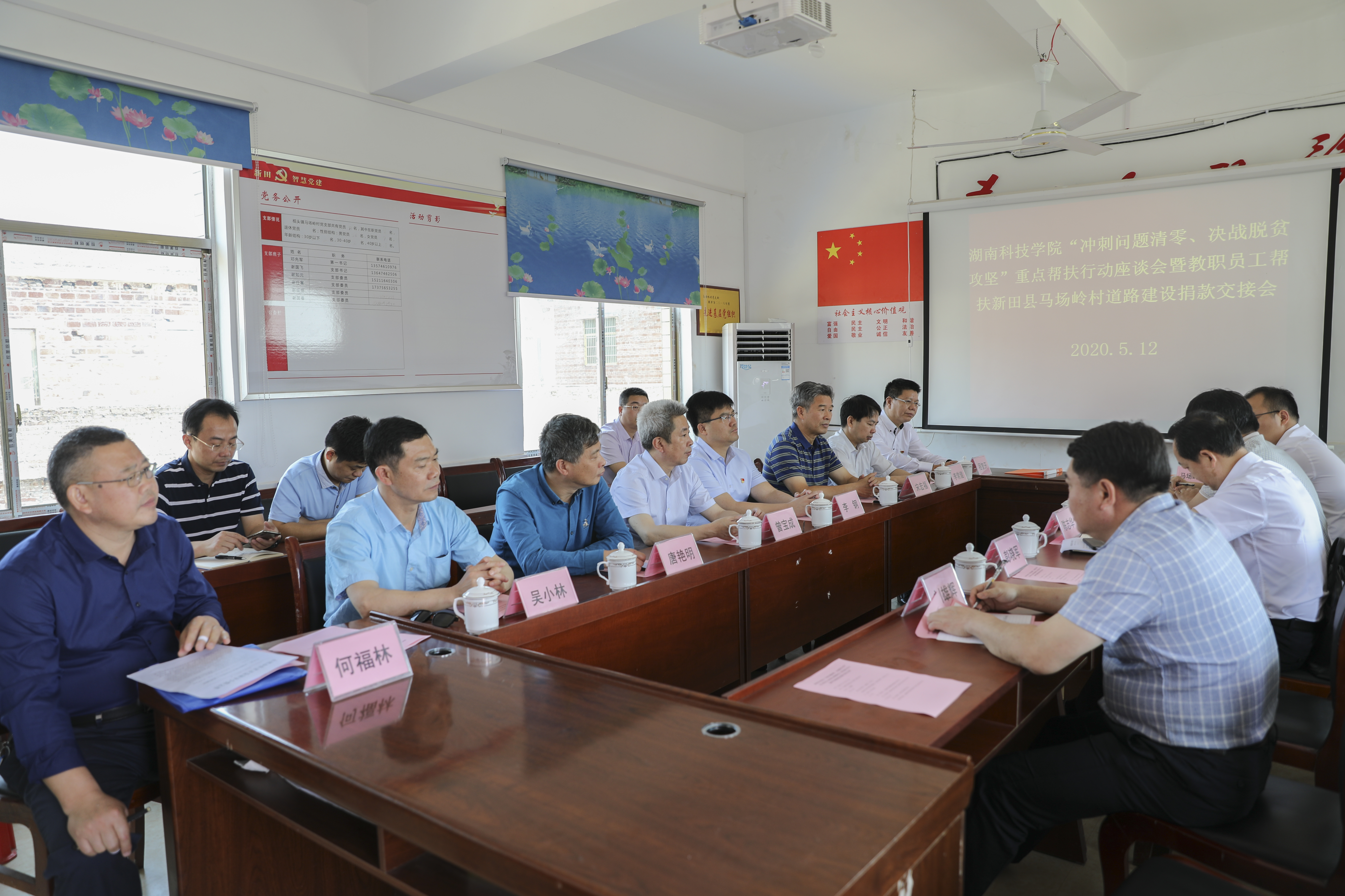本网讯 5月12日,党委书记曾宝成,校长李钢,校领导唐艳明、宋宏福、李常健、吴小林、程智开,校党委委员、组织部长、扶贫办主任何福林,校党委委员、宣传统战部长杨涛以及学校122名结对帮扶干部来到学校定点帮扶的新田县枧头镇马场岭村开展“冲刺问题清零、决战脱贫攻坚”重点帮扶行动,助力打赢脱贫攻坚战。新田县委常委、组织部长陈志华,副县长彭晓军陪同。