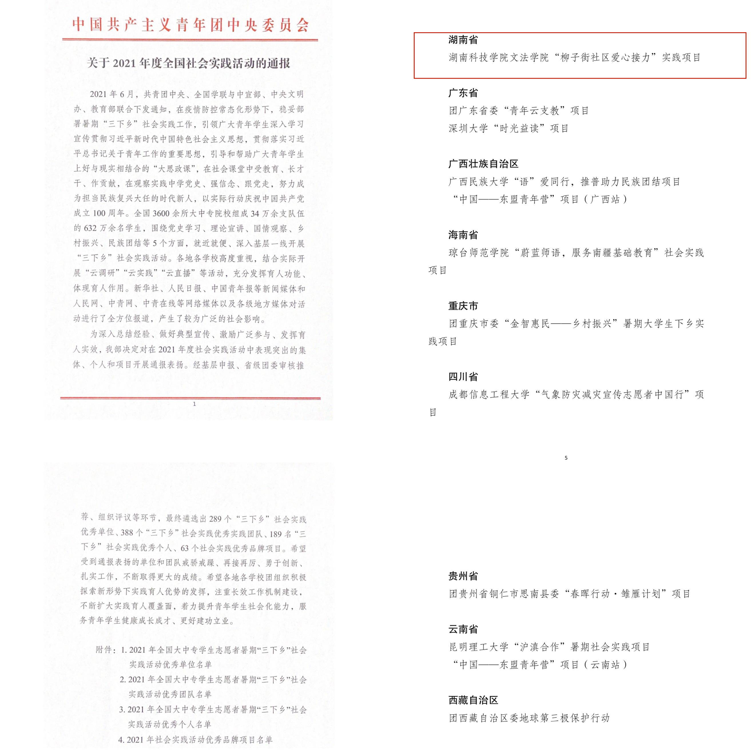 学院曾荣获全国校园文化建设优秀奖、省校园文化建设特等奖、两次荣获省“五四红旗”团总支,柳子街社会实践项目被团中央评为2021年社会实践活动优秀品牌项目。
