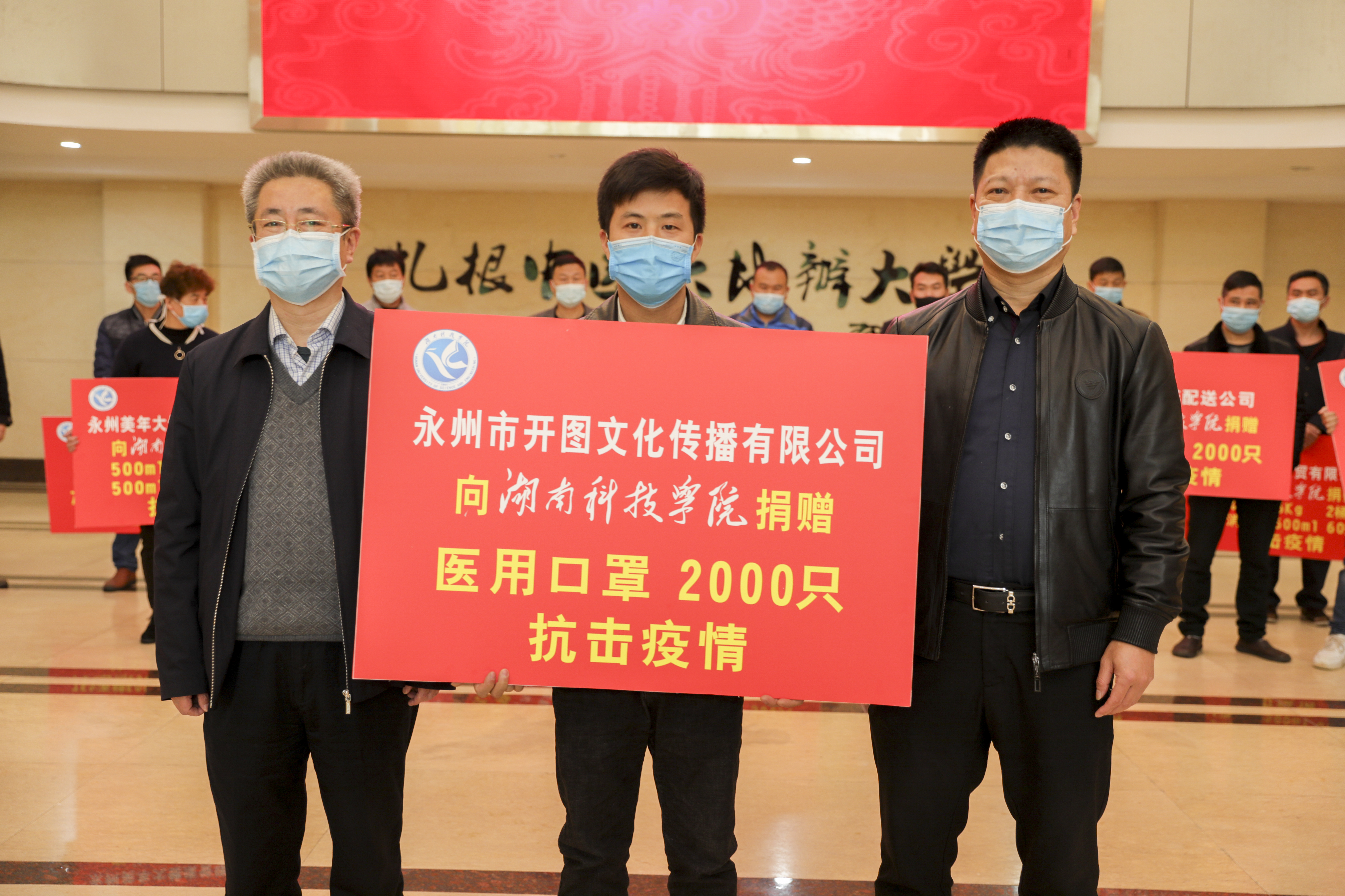 本网讯 4月2日下午,永州市三和实业有限公司等15家友好合作单位向学校捐赠防控物资,以实际行动表达了共同战“疫”的坚定决心。校党委书记曾宝成、副校长程智开出席捐赠仪式。 为积极筹措学校防控物资,后勤服务总公司向所有友好合作单位发出防控物资捐赠倡议书,共得到了21家友好合作单位的积极响应。学校将把捐赠物资全部用于抗击疫情,确保企业的爱心之举落到实处,为学校师生的健康和安全保驾护航。