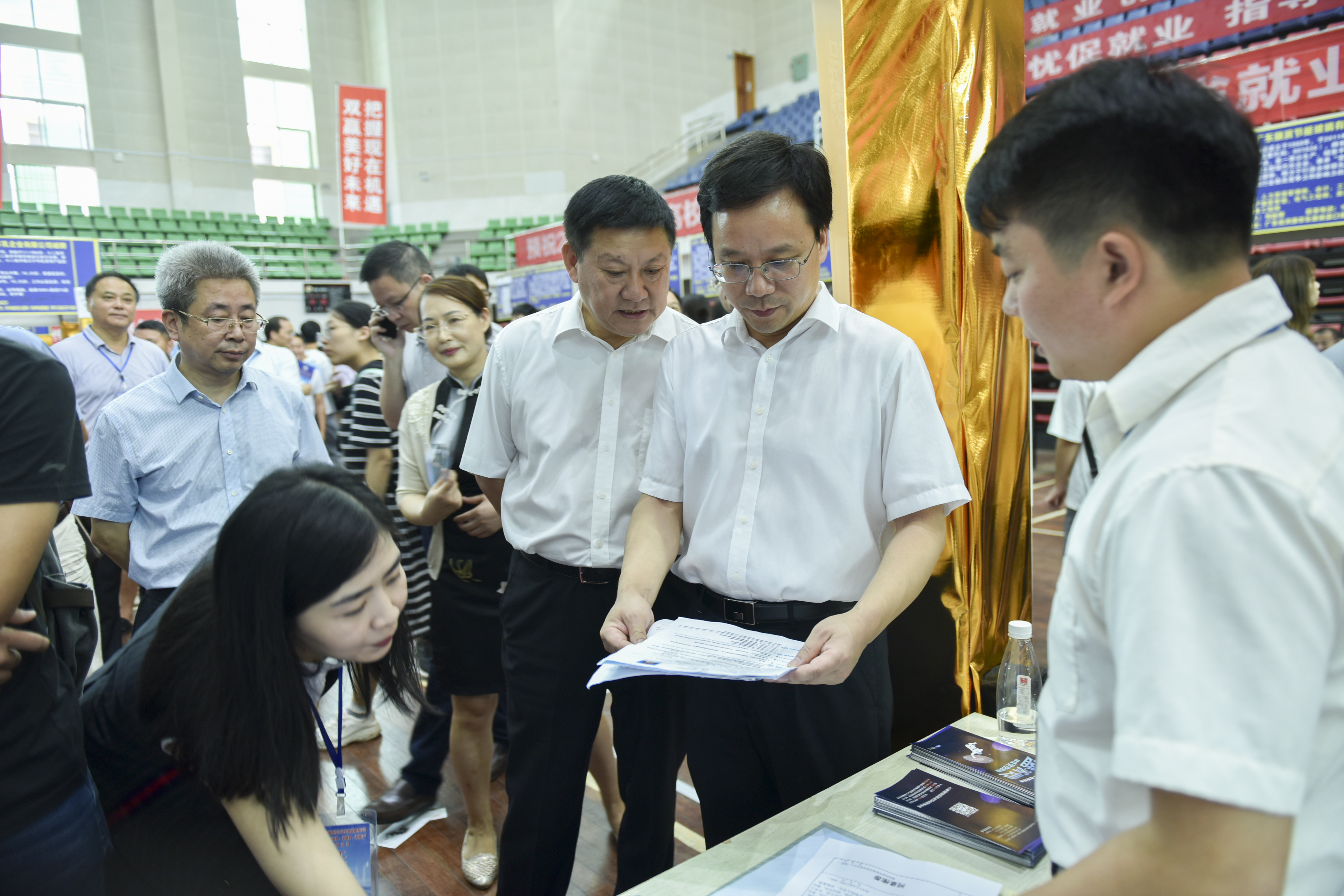 本网讯 9月4日上午,2019年全国高校毕业生就业服务行动暨湖南省“就业服务进校园”专项活动在我校体育馆举行。省就业服务中心党委书记、主任周光明,副市长严兴德,校党委书记曾宝成,副校长程智开以及我校和永州职业技术学院、潇湘技师学院的4000余名毕业生参加活动。