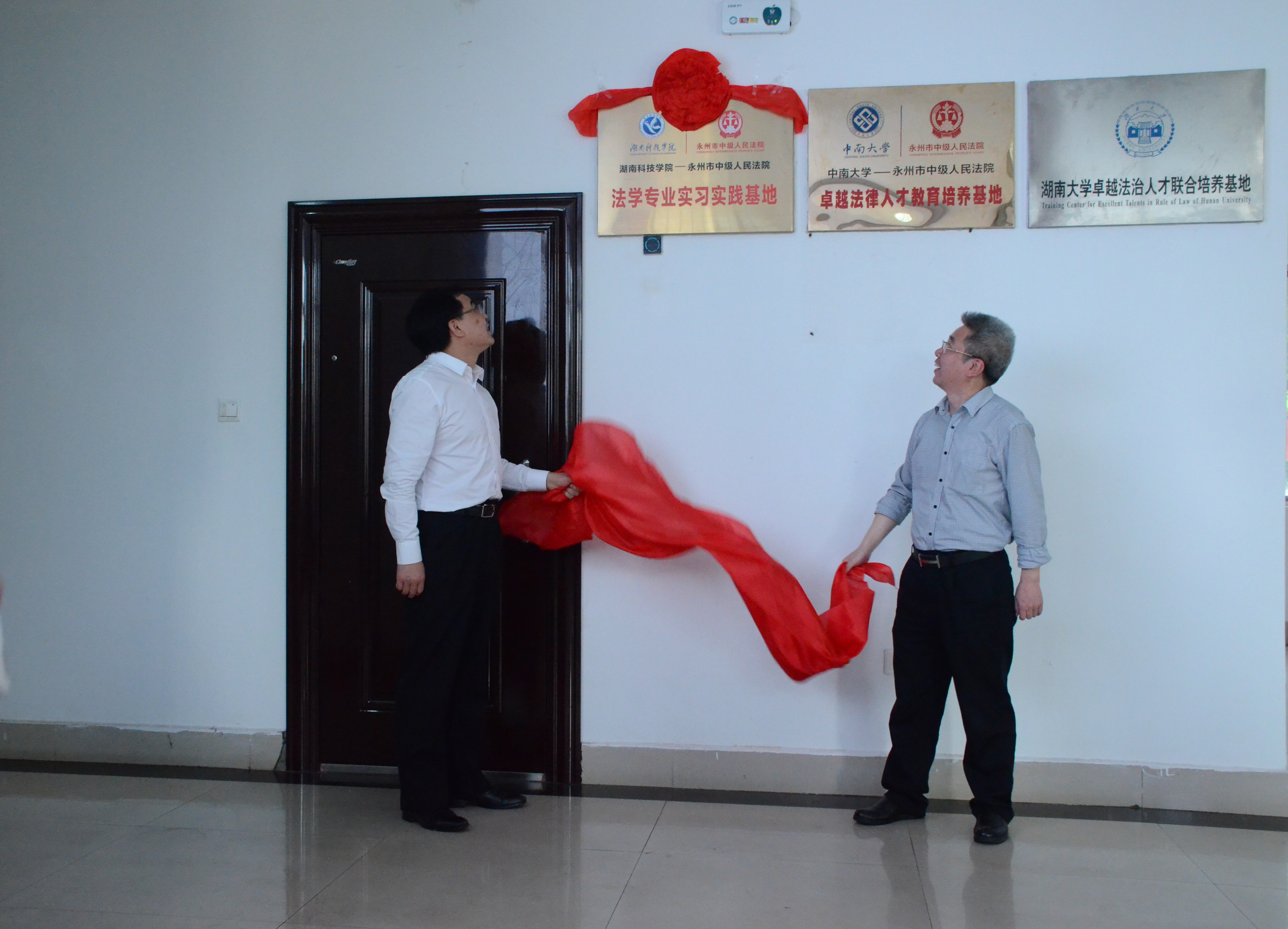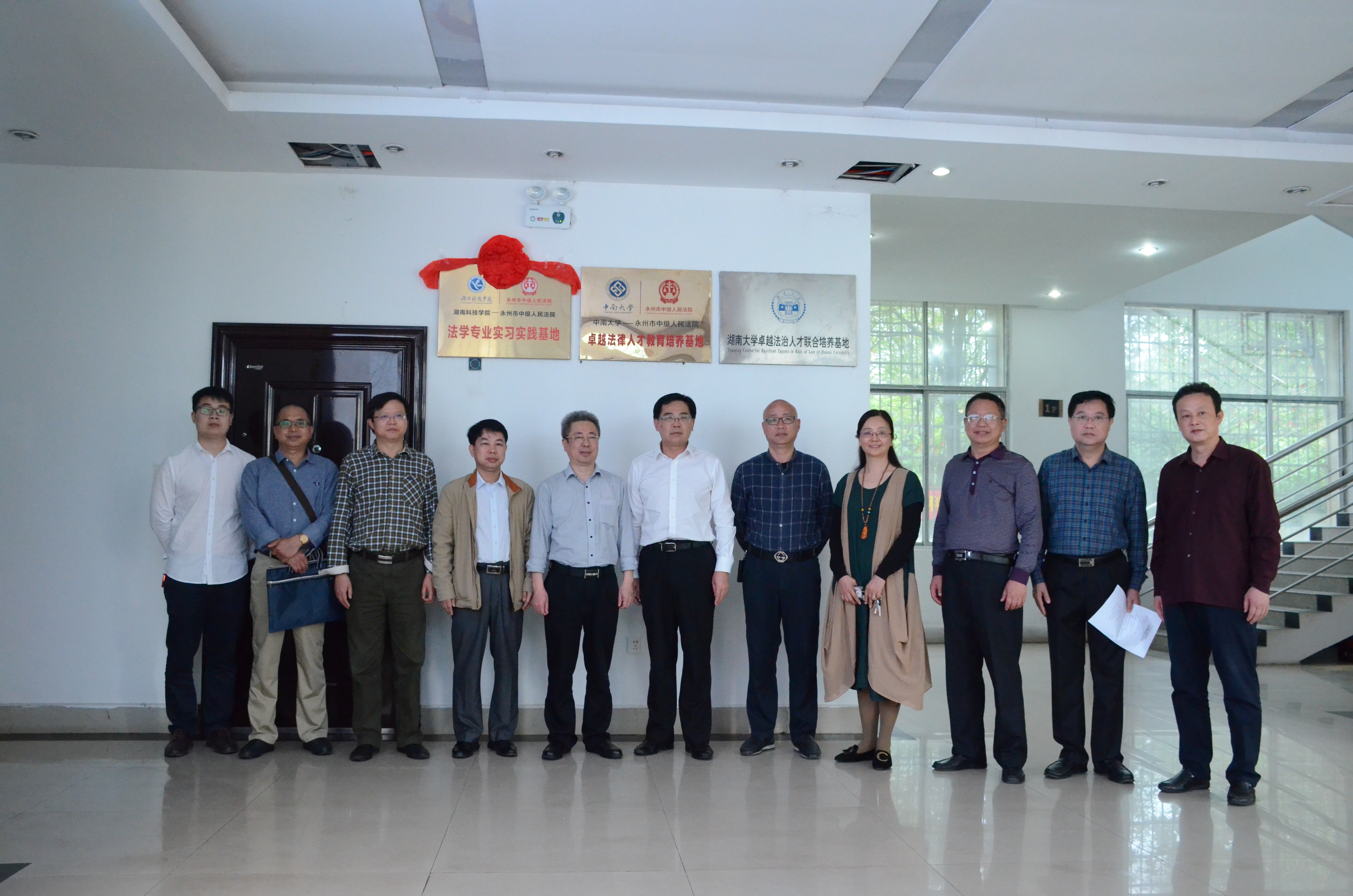 本网讯 4月9日上午,“万搏平台法学专业实习实践基地”揭牌仪式在永州市中级人民法院举行,市中级人民法院党组书记、院长罗重海和校党委书记、校长曾宝成共同为基地揭牌。市中级人民法院副院长高和平、郭红艳,副校长李常健及人文与社会科学学院负责人等参加揭牌仪式。