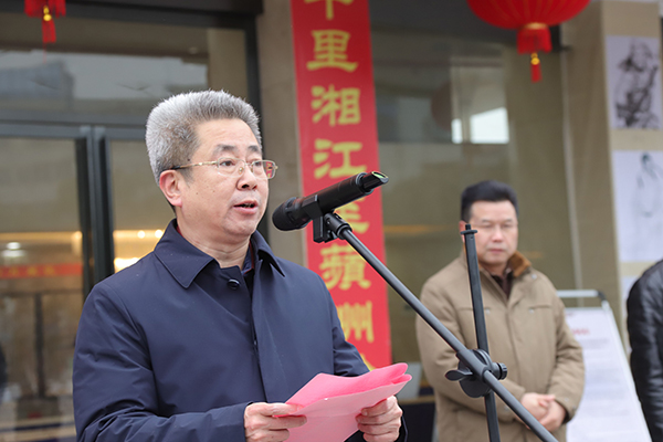 曾宝成致成果展开幕辞。他说,零陵是学校的主场,一直以来,学校全体师生把零陵当成自己的第二故乡,始终关注、支持和参与零陵发展建设,积极建言献策,为零陵经济社会发展做出了突出贡献。2018年,学校与零陵区委区政府积极开展校地合作,旨在整合双方智力资源,共同推进档案课题研究工作。他指出,2018年学校投入精锐智力,全力支持、配合和参与档案课题研究工作,其中副教授职称以上6人,硕士以上学历10余人。在课题组全体人员的团结协作下,经过近一年时间的努力,完成了三个子课题的研究工作,达到了预定目标任务。通过课题研究,发现了零陵天神观山歌、零陵采莲船、大西门凉拌粉以及凼底辣草酒曲制作工艺等可以申报非遗名录的新项目;收集、整理了一批零陵特色历史文化新档案;挖掘了江西会馆田地产界碑、楚粤孔道等一批新古迹;在《中国档案》《档案时空》《永州日报》等新闻媒体上发表了相关作品和报道20余篇;编撰了《潇湘古镇电子地图》《湘江水路图》《永州府志》《零陵县志》《零陵非遗》等一批新著作。这些研究成果,对于推动零陵历史文化、旅游和档案事业发展具有积极意义。他表示,今后学校将继续加大与零陵区委、区政府的合作力度,在经济、社会、文化、科技、教育、体育等方面广泛加强合作,携手共进,努力把主场变为主场优势,积极打造“校地合作”典范。