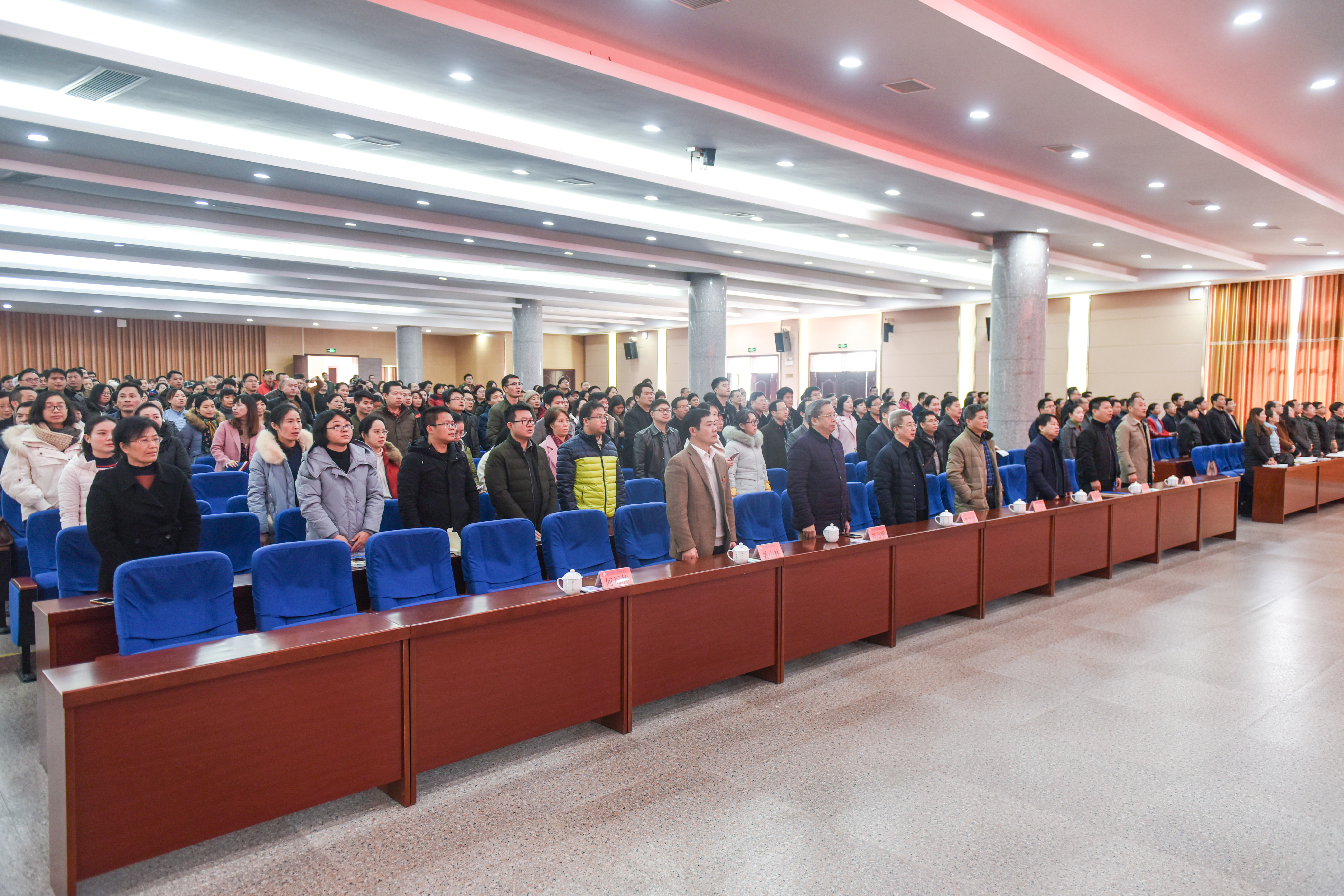 当大会中播放国歌的声音响起,全体师生起立同唱国歌。会上,习近平总书记发表重要讲话,回顾改革开放40周年的光辉历程,深刻总结改革开放的宝贵经验。“改革开放是我们党的一次伟大觉醒”“改革开放是党和人民大踏步赶上时代的重要法宝”“改革开放已走过千山万水,但仍需跋山涉水”……在观看直播的现场,广大师生全神贯注,仔细地聆听,详细地记录,频繁地点头示意,纷纷为报告精彩之处点赞,为改革开放40年的光辉历程感到无比骄傲,为伟大祖国的繁荣昌盛感到无比自豪。