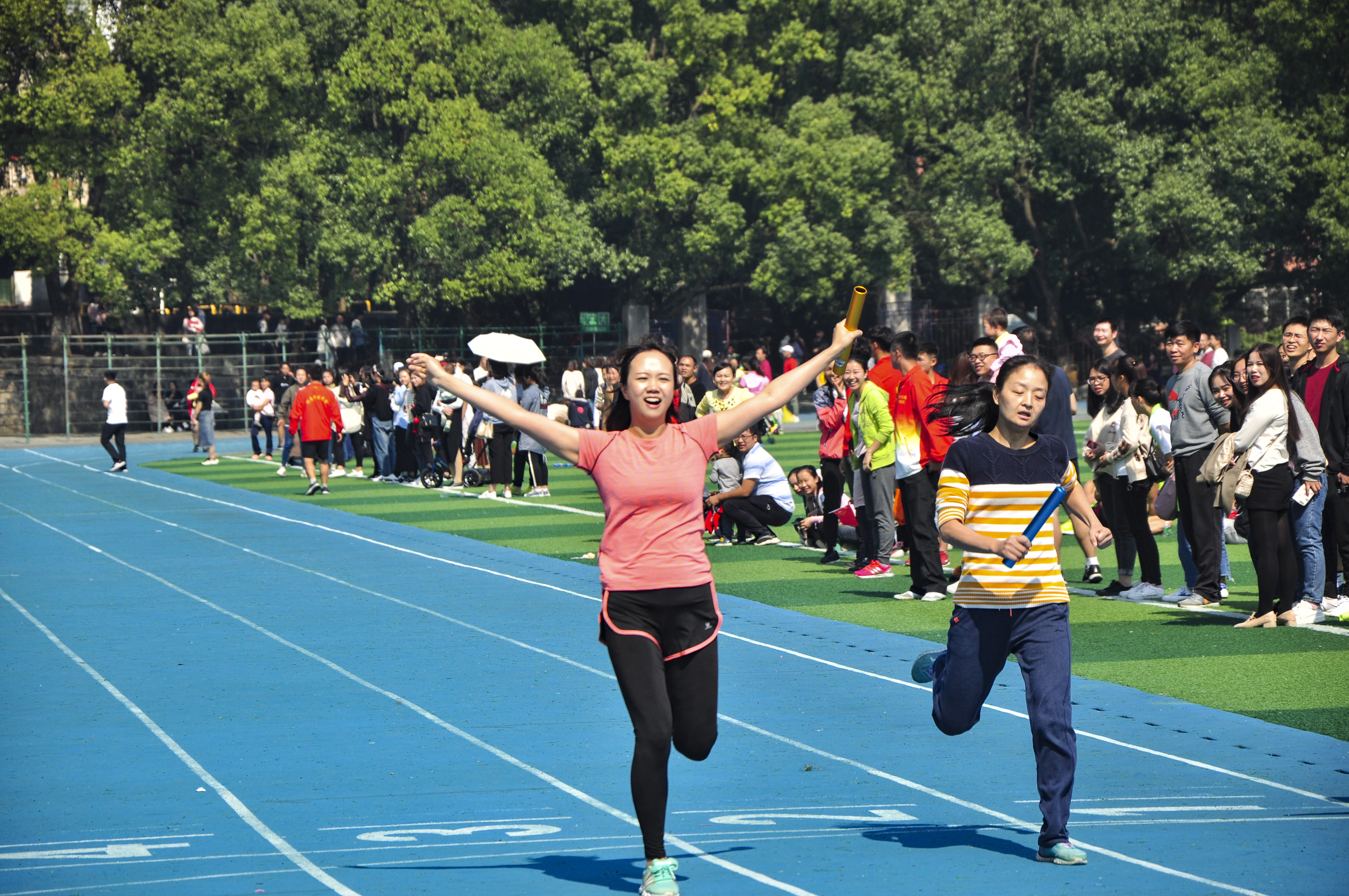 本网讯 11月2日,学校第十三届田径运动会隆重开幕。19支教职工代表队和23支学生代表队共857名运动员参赛。运动健儿们将在学生非体育专业组、学生体育专业组和教职工组中进行52个项目激烈角逐。今天,我们一起浏览高清美图,领略运动场上的精彩瞬间!