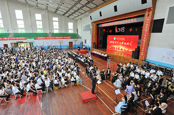 本网讯 灵犀湖畔,锦绣潇湘忆华年;西山脚下,满园桃李竞芬芳。6月8日上午,我校2018届学生毕业典礼在体育馆举行。校长曾宝成勉励毕业学子:在风浪中学会坚强,在挑战中逆风飞翔,在奋斗的征途上学会责任与担当,胸怀梦想,心向美好!