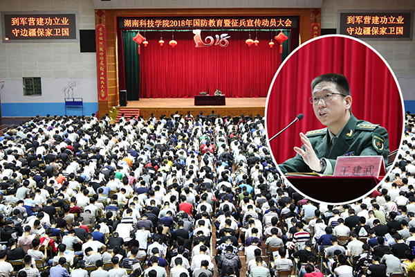 王建武给同学们上了一堂生动、深刻的国防教育课。王建武指出,强国必须强军,强军必须要有高素质人才队伍,要全面认识应征入伍的重大意义。他从理论到实践、从国内到国际,运用大量的数据和鲜活的事例,分析了我国当前的国防形势,并从当兵条件、优待政策、各项准备等方面进行了征兵宣传动员。