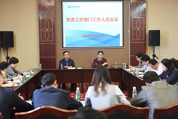 本网讯 为进一步加强党务工作队伍的政治建设,推进全面从严治党向纵深发展,4月11日上午,党委书记陈弘主持召开学校党委工作部门全体工作人员会议。纪委书记彭立威,党政办公室,党委组织部(党校),党委宣传部(党委统战部),纪委,机关党委等部门同志参加会议。