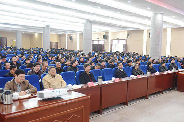 本网讯 12月6日下午,湖南省社科联党组书记、副主席宋智富以“深入学习贯彻党的十九大精神 奋力建设富饶美丽幸福新湖南”为主题,来校宣讲十九大精神。宣讲会由党委书记陈弘主持。党委副书记、校长曾宝成及在校领导宋宏福、彭立威、郑山明、李常健、吴小林、程智开,永州市社科联主席陈水恩等参加了这次宣讲会。