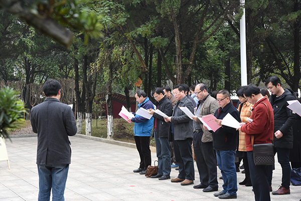 本网讯 “我志愿加入中国共产党,拥护党的纲领,遵守党的章程,履行党员义务……”12月7日下午,学校机关党委组织开展“不忘初心,牢记使命,努力学习贯彻党的十九大精神,重温红船精神”主题党日活动,全体党员在祁阳县陶铸纪念馆陶铸雕像前庄严宣誓,重温入党誓词。