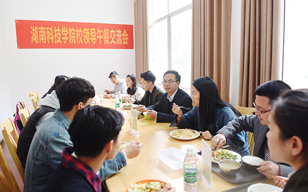 午餐交流会在轻松融洽的氛围中逐步开展,同学们纷纷提出了自己在生活、学习方面的疑问以及对学校发展建设方面的建议,陈弘为大家一一解答,鼓励大家积极建言献策。陈弘鼓励青年学子趁着朝气蓬勃之时,努力锻炼自己的能力,学习知识,为未来的国家建设奉献青春力量。陈弘还亲切地跟同学们聊起家常,告诉同学们在生活中多关心同学,要懂得感恩、孝敬父母,做一名有理想、有抱负、有正气、有担当的大学生。
