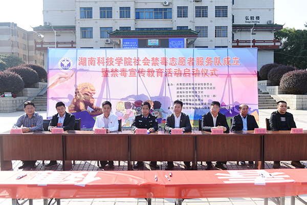 本网讯  10月31日下午, “无毒青春 健康生活”禁毒宣传教育活动在校正式启动。副校长程智开,零陵区副区长、公安局长王小会及相关部门负责人出席。带队老师、禁毒志愿者等500余人参加启动仪式。