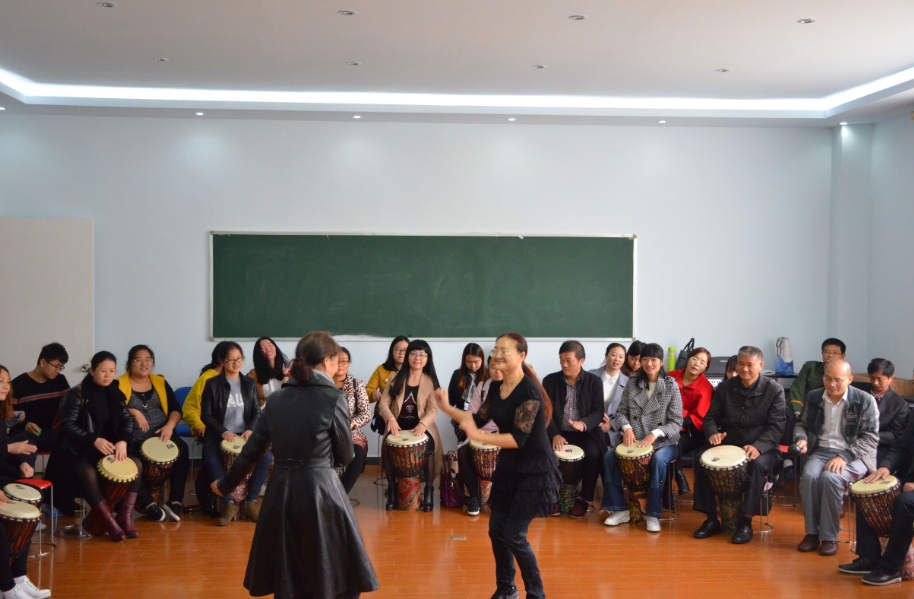 本网讯 近日,由我校承办的“国培计划(2017)——留守儿童心理关爱与家庭教育指导能力提升班”打造和推出的“鼓圈”活动探索团体音乐治疗活动受到了参与体验的70名乡村教师的一致好评。