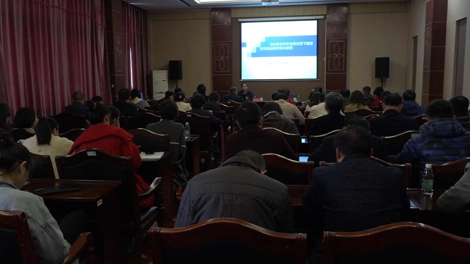 交流座谈会后,湘潭大学副校长盛明科教授为2022年国家社科基金申报者及部分教授博士代表作《深化教育评价改革背景下国家社科基金申报与研究》辅导报告;湘潭大学研究生院院长刘金刚教授和发展规划与学科建设处处长易大东教授就应用特色学科建设与管理、硕士点建设与申报等重点工作与我校部分学科带头人进行了深入指导互动;湘潭大学人事处处长王协舟教授为我校绩效工资改革、教育评价和进修访学等提供了具体的指导与答复。