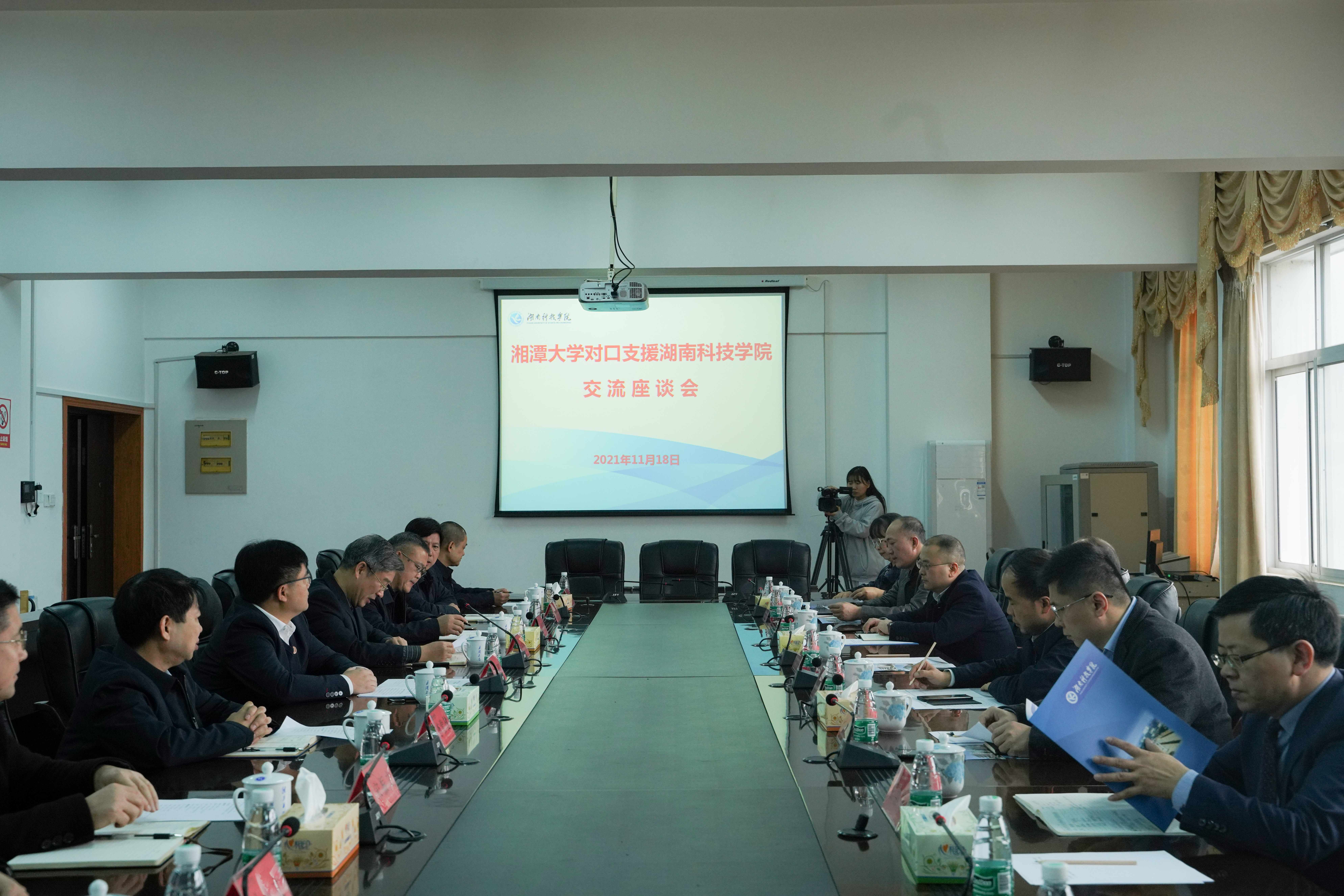 李钢代表学校对湘潭大学大学长期以来的支援和帮扶表示衷心感谢,并详细汇报了第二轮对口支援以来湘潭大学助力我校取得的突出成效。一是双方互动交流更加频繁,两校校领导和专家学者磋商交流次数和人次显著提高;二是教育教学工作卓有成效,我校国家级省级一流专业申报、专业课程体系建设、新工科专业建设、工程教育认证等全面提速;三是学科科研实力不断增强,我校国家级科研项目、标志性科研成果和省部级科研奖励来势喜人,特别是兼职硕导人数增长较快;四是师资结构愈发科学,湘大为我校教师深造学习提供便利、为向我校输送多名优秀人才。他同时希望湘潭大学进一步在“双一流”和硕士学位点建设、科学研究与成果转化、专业课程体系建设与人才培养、师资队伍建设与博士委托培养、兼职硕导选聘、联合培养研究生等方面加大支援力度。