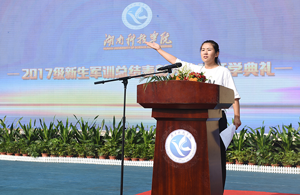 本网讯 9月30日上午,2017级新生军训总结表彰大会暨开学典礼在田径场举行。校党委副书记、校长曾宝成,党委委员、副校长宋宏福、李常健、程智开,武警永州政治处副主任谭杨亮出席。