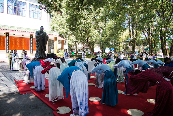 学校举行拜师礼 纪念孔子诞辰2568周年(图)