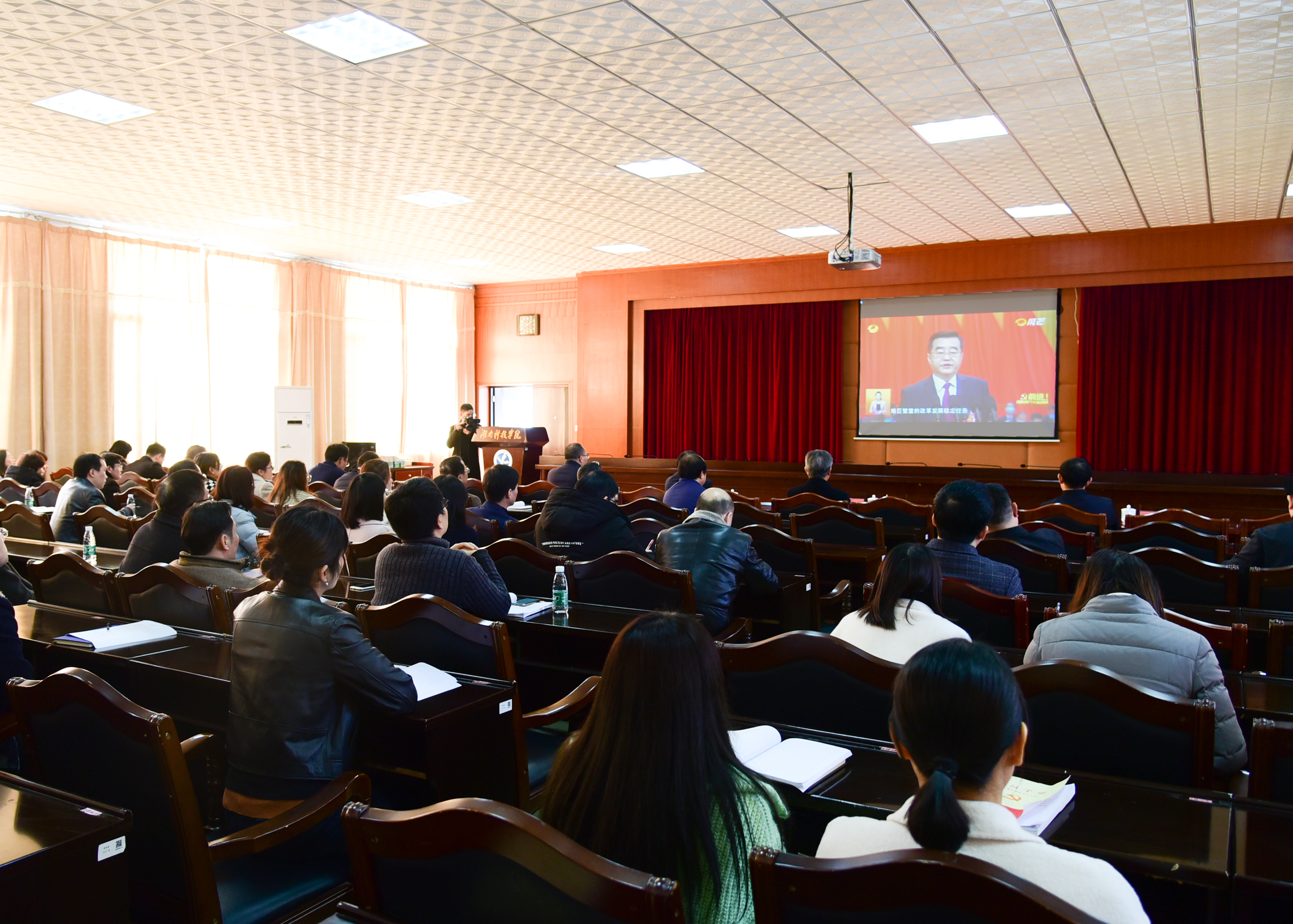 本网讯(记者 吴贵佳 周芳梅)中国共产党湖南省第十二次代表大会于11月25日在长沙市隆重开幕,中共湖南省省委书记张庆伟代表第十一届委员会向大会作报告。大会总结了我省过去五年来取得的历史性成就,为未来五年的高质量发展描绘了新蓝图。我校师生热切关注大会动态,组织集中收看大会直播,认真学习大会精神,激情满怀,热议全省党代会报告。大家一致表示,将坚持以习近平新时代中国特色社会主义思想为指导,坚定不移沿着习近平总书记指引的方向前进,牢记嘱托、不负使命,为全面建立社会主义现代化新湖南而努力奋斗!
