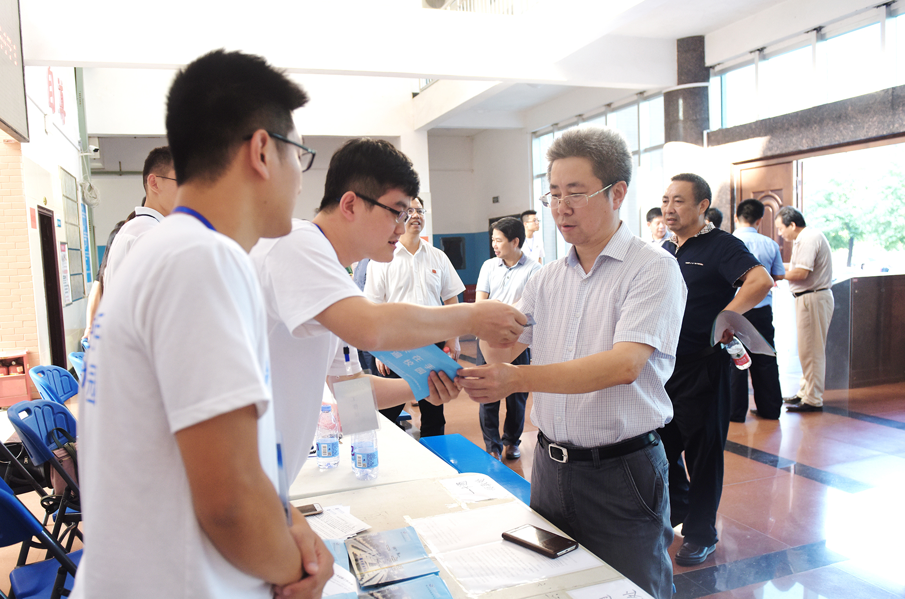 上午8时许,校党委书记陈弘,校长曾宝成及在校领导唐艳明、宋宏福、郑山明、李常健、吴小林、程智开与相关职能部门负责人来到各个学院设立的迎新接待处及迎新服务点,看望并慰问迎新工作人员,与他们一起迎接新生的到来。