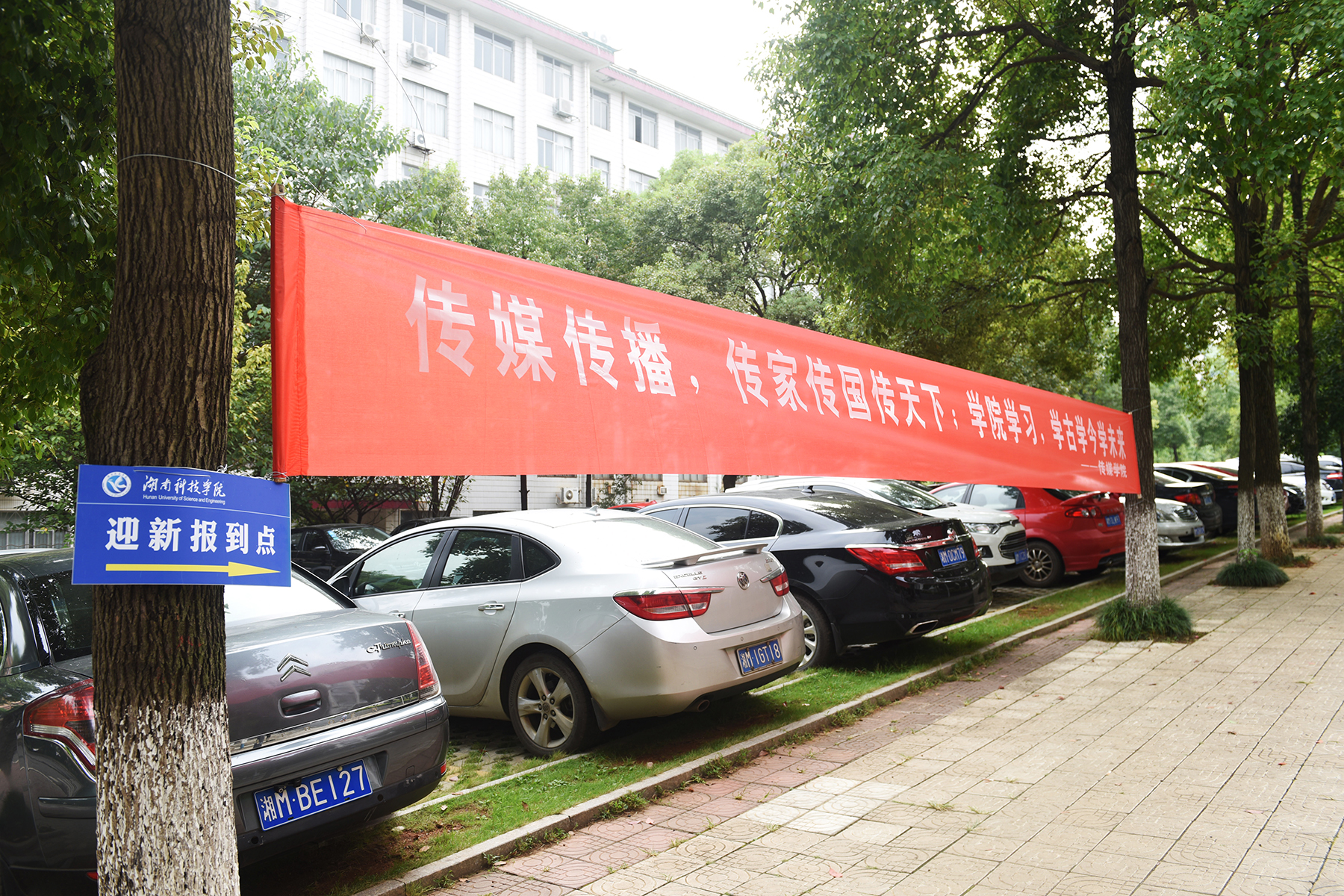 9月15日下午,微风和畅,阳光明媚,伴着秋日的清凉,学校迎新工作拉开序幕。进入校园,喜庆的迎新展板映入眼前。