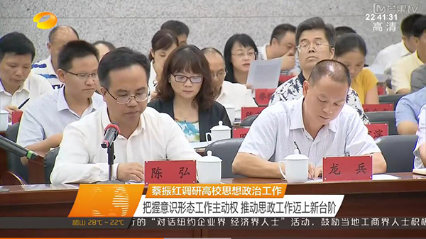 本网讯 9月21日下午,全省高校思想政治工作调研座谈会在长沙理工大学召开。省委常委、省委宣传部长蔡振红和全体与会代表深入课堂听课,长沙理工大学、万搏平台、中南大学、湖南大学、湖南师范大学、湖南第一师范学院6所高校党委书记、教师、辅导员、学生代表作了交流发言。蔡振红部长讲话强调,要进一步深入贯彻落实全国、全省高校思想政治工作会议精神,加强高校意识形态和思想政治工作,努力创新工作方法,确保高校思想政治工作始终沿着正确方向发展。