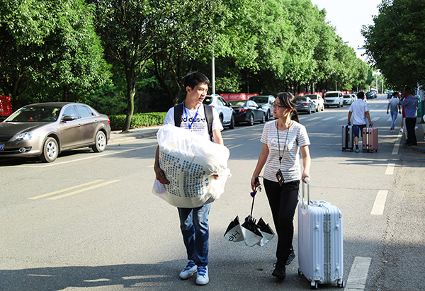 早上6点,迎新志愿者队伍就已经在各个接站点热情迎接新生,为新生指引路线,热心地帮助他们搬运行李上车,工作紧张而有序。当然,在学校门口,也早有一批志愿者在等待着。只要遇到新生及家长,他们都热情地提供从接待指引到办理入学手续、安顿行李、送入宿舍等周到细致的服务。尽管工作很辛苦,他们脸上依然洋溢着兴奋和喜悦。