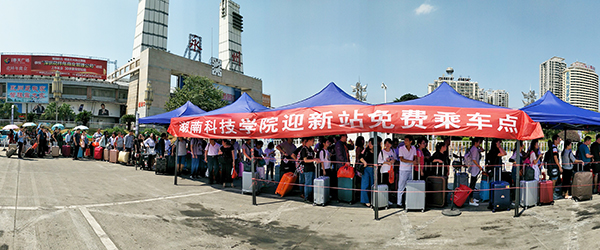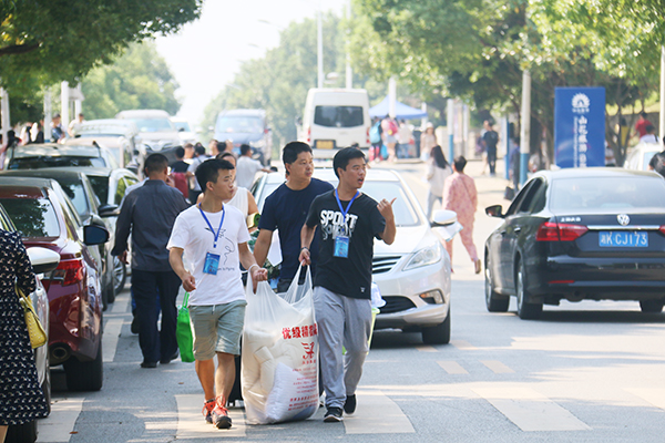 来自山西的李同学说,一下车就看到学长热情的笑脸,受到周到的服务,令他暂时忘记了离家的孤单和旅途的辛苦。一位家长说,广播里的轻音乐、志愿者们周到的安排和服务,让她的心里很踏实,也使她的孩子感受到了青春的气息。