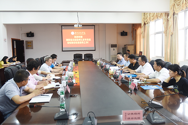 本网讯 6月27日下午,以湖南省科技厅生产力促进中心副主任毛明德为组长的专家组对我校申报的省级“众创空间”进行实地考察。校长曾宝成、纪委书记彭立威及相关部门负责人陪同考察汇报。专家组通过听取汇报、察看现场、查阅资料等方式进行综合评估。