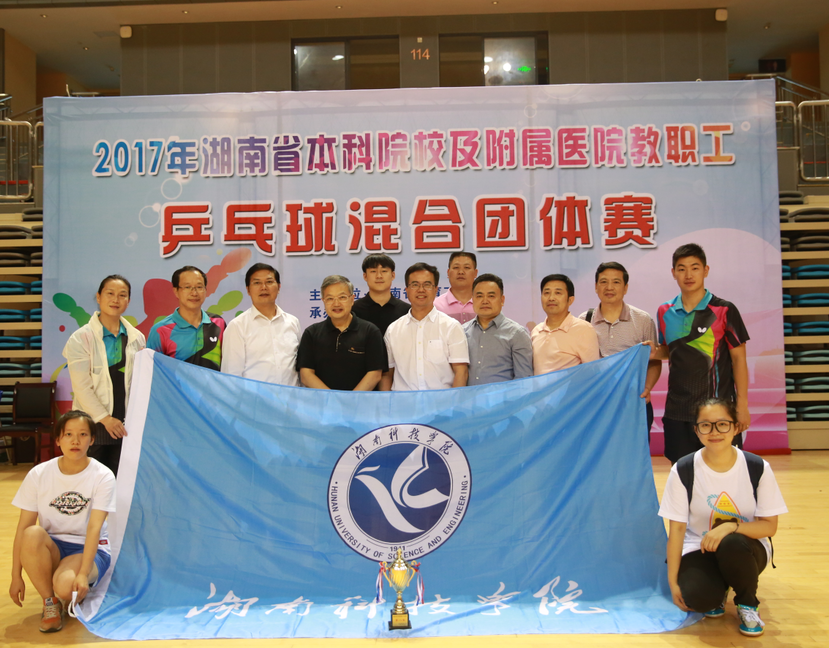 本网讯 6月15日至16日,2017年湖南省本科院校及附属医院教职工乒乓球混合团体赛在衡阳师范学院举行,我校派队参赛并成功闯入八强,最终荣获第八名,这也是我校在此类比赛中取得的最好成绩。