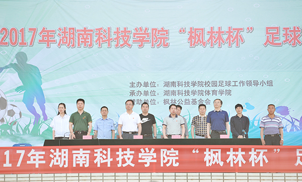 本网讯 5月5日下午,随着裁判一声哨响,我校2017年“枫林杯”足球联赛正式拉开帷幕。揭幕战在教职工代表队和体育学院男队之间展开。