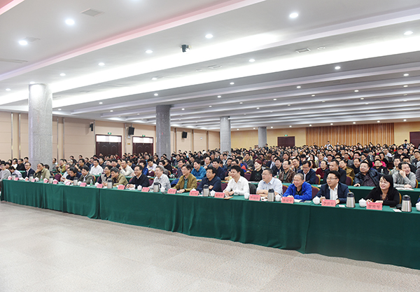 本网讯 4月17日,我校新落成的潇湘大讲堂迎来第一位演讲嘉宾。中国教育变革人物、中国好校长、浙江大学党委副书记、贵州大学校长郑强教授应邀来校带来一场题为“地方区域性高校‘双一流’建设的现实背景与可行举措——以贵州大学为例”的报告。报告会由党委书记陈弘主持。全体校领导、全校教职员工和部分学生代表共聚一堂聆听报告。