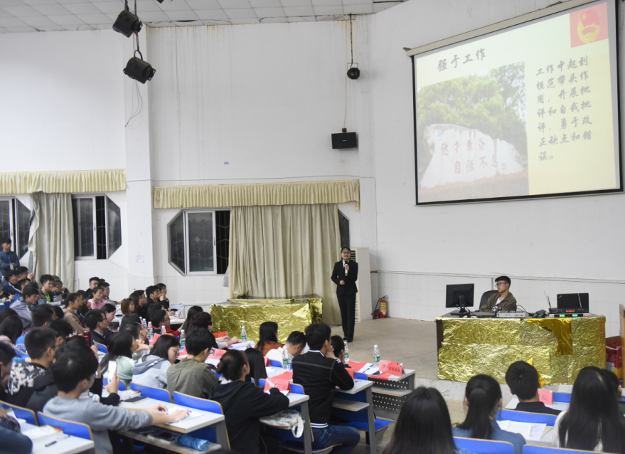 本网讯 426日晚,我校“一学一做”微团课比赛决赛在日新楼212举行。副校长程智开、党委组织部部长卢桂珍、党委宣传部部长杨涛、马克思主义学院院长廖雅琴、校团委副书记刘佳应邀出席并担任大赛评委。全校专职团干及第22期“青年马克思主义者培训班”600余名学员观看了比赛。