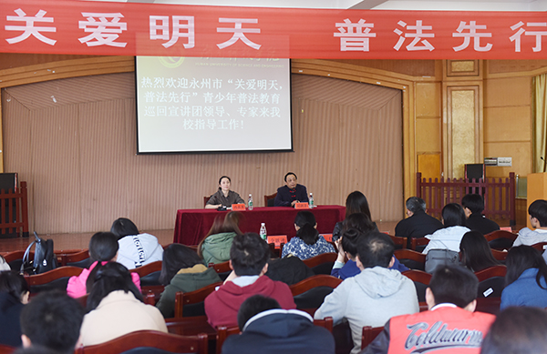 本网讯 3月27日,全市“关爱明天 普法先行”青少年普法教育巡回宣讲活动走进我校。永州市团市委副书记冯志多来校作主题为“守法才能自由 懂法才有明天”的讲座。