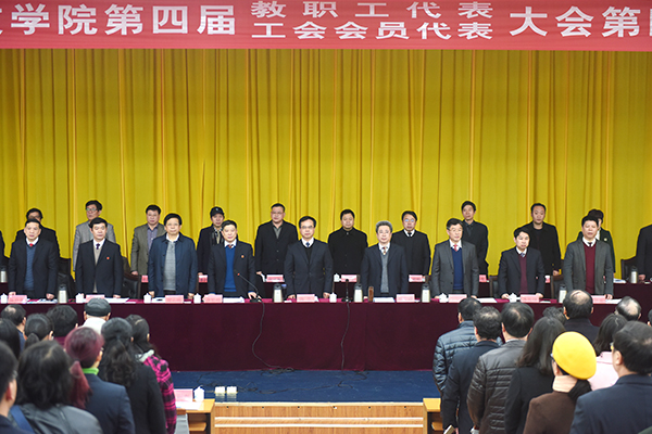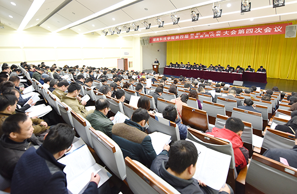 本网讯 春意盎然万物苏。3月11日上午,我校第四届教职工代表暨工会会员代表大会第四次会议在尚美楼二楼演播厅开幕。两百余名会议代表、特邀嘉宾、列席代表齐聚一堂,同商改革大计,共绘发展蓝图。主席团成员、校长曾宝成作题为《聚焦重点短板,持续精准发力,为加快推进“双一流”建设而努力奋斗》的工作报告。会议由主席团成员、校党委副书记唐艳明主持。