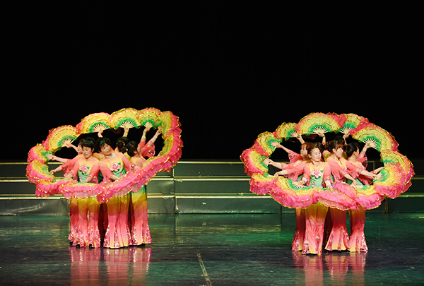晚会节目异彩纷呈夺人眼球,时而舞袖翩翩,步履轻盈;时而歌声婉转,余音缭绕;时而乐趣横生,掌声阵阵......台上演员们认真投入的表演精彩迭出,为现场观众带来一场视听盛宴。开场舞《祖国您好》一群身穿艳丽民族服装的表演者载歌载舞,轻快的舞步、动人的舞姿让现场观众纷纷入迷歌曲《满城尽带黄金甲》外籍教师以民族唱法配合钢琴演奏,这种中西结合的新鲜唱法别有一番风味;祁阳小调《新农村建设百花开》直白通俗的地方说唱,传达出党的惠民政策和新农村建设给农民带来了幸福新生活的喜悦之情湖南花鼓戏《刘大娘笑呵呵》则将说白与表演完美结合,浓浓的乡土气息透露出农民的朴实善良祁阳小调《竹山美食几多宝》则用欢快诙谐的曲调将各种传统美食的做法一一描述,让人沉醉其中;独唱《国色天香》以反串的形式,凭多变的唱法惊艳全场赢得观众掌声阵阵。晚会在瑶族姑娘和瑶族小伙带来的瑶族舞蹈《过山》中落下帷幕。